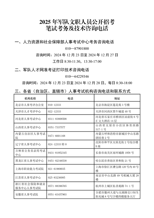 原文標(biāo)題:2025年軍隊文職人員公開招考筆試考務(wù)及技術(shù)咨詢電話