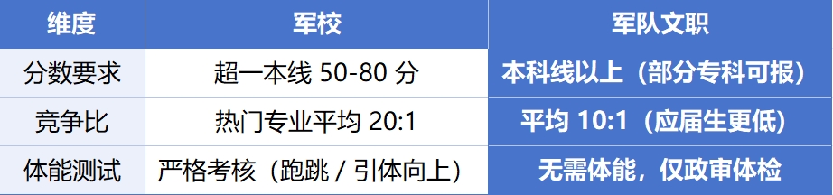 1. 軍校 VS 文職:錄取門檻對比