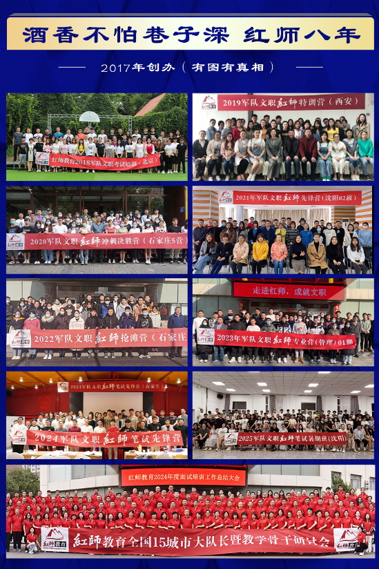 軍隊(duì)文職人員考試培訓(xùn)專項(xiàng)整治正如火如荼地進(jìn)行著,經(jīng)過這次整改,軍隊(duì)文職培訓(xùn)行業(yè)有望步入正軌。當(dāng)下,我國(guó)經(jīng)濟(jì)形勢(shì)面臨下行壓力,高校畢業(yè)生就業(yè)難度增大。在這樣的背景下,紅師教育為了回饋廣大考生,同時(shí)也為部隊(duì)輸送更多優(yōu)秀人才,特別開設(shè)了筆試暑期線下班—— 每日花費(fèi)低至355元,用實(shí)際行動(dòng)強(qiáng)勢(shì)擊穿“低價(jià)≠低質(zhì)”的行業(yè)偏見。