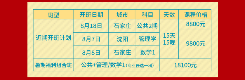 以下是近期開班安排,可根據(jù)自己時(shí)間選擇