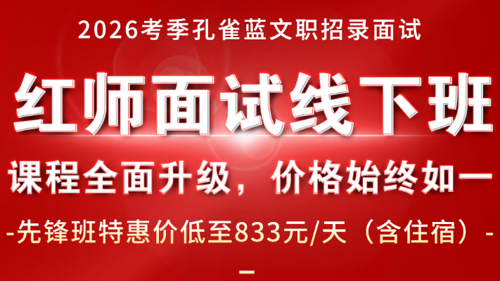 2026軍隊(duì)文職面試備戰(zhàn)已進(jìn)入關(guān)鍵階段,當(dāng)不少考生還在為面試班的昂貴學(xué)費(fèi)猶豫時(shí),紅師教育已率先打響一場(chǎng)誠(chéng)意滿滿的“價(jià)格戰(zhàn)”——先鋒班特惠價(jià)低至833元/天,且含星級(jí)住宿。遠(yuǎn)遠(yuǎn)低于市場(chǎng)價(jià)!但是真正讓無(wú)數(shù)人選擇紅師、信任紅師的,是那套經(jīng)過(guò)8年沉淀、貫穿教學(xué)全程的面試培訓(xùn)“殺手锏”。