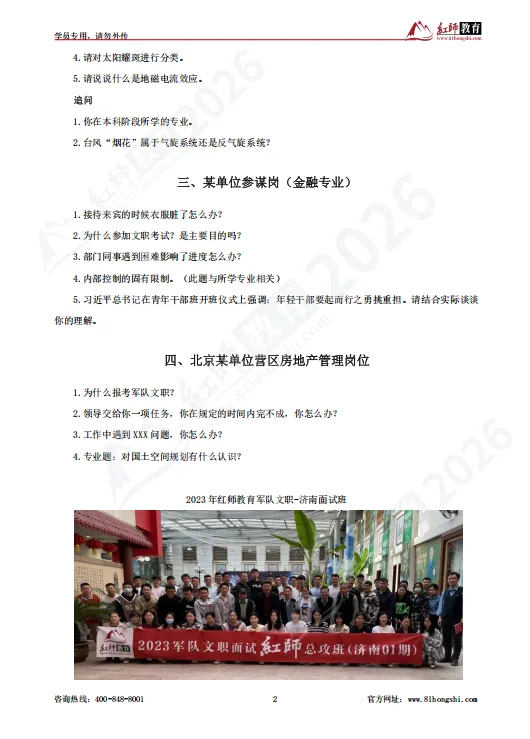軍隊文職面試環(huán)節(jié)很重要,占總成績的40%,面試表現(xiàn)不好的話,筆試分再高也挽救不了被刷的命運。紅師教育為大家準備了歷年紅師學(xué)員回憶題。
