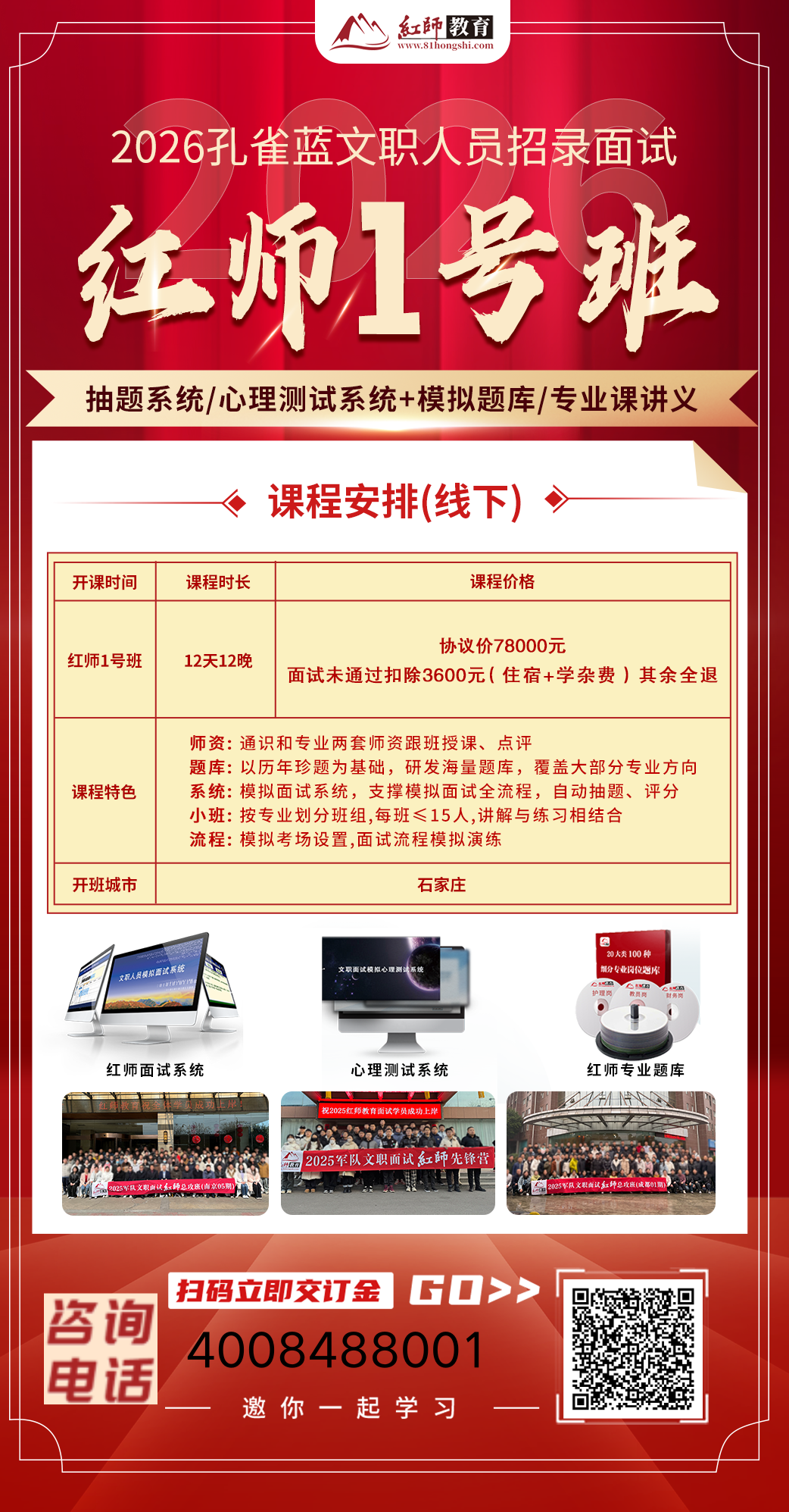 ?紅師2026孔雀藍文職面試線下集訓(xùn)1號班來啦!