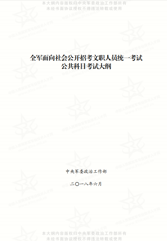 2026年軍隊(duì)文職考試大綱已確定,小編將官網(wǎng)2023年8月12日發(fā)布的新版重慶省軍隊(duì)文職考試大綱匯總?cè)缦拢航?,中央軍委政治工作部編修發(fā)布新