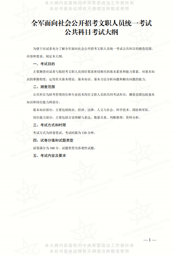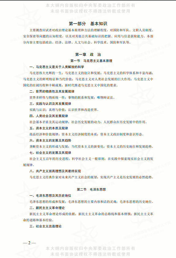 2026年軍隊(duì)文職考試大綱已確定,小編將官網(wǎng)2023年8月12日發(fā)布的新版新疆省軍隊(duì)文職考試大綱匯總?cè)缦拢航?,中央軍委政治工作部編修發(fā)布新