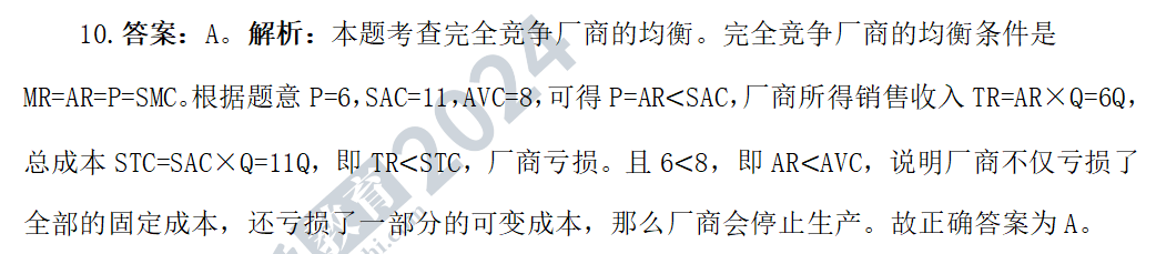 10. 某企業(yè)生產(chǎn)的商品價(jià)格為6元,平均成本為11元,平均可變成本為8元。則該企業(yè)在