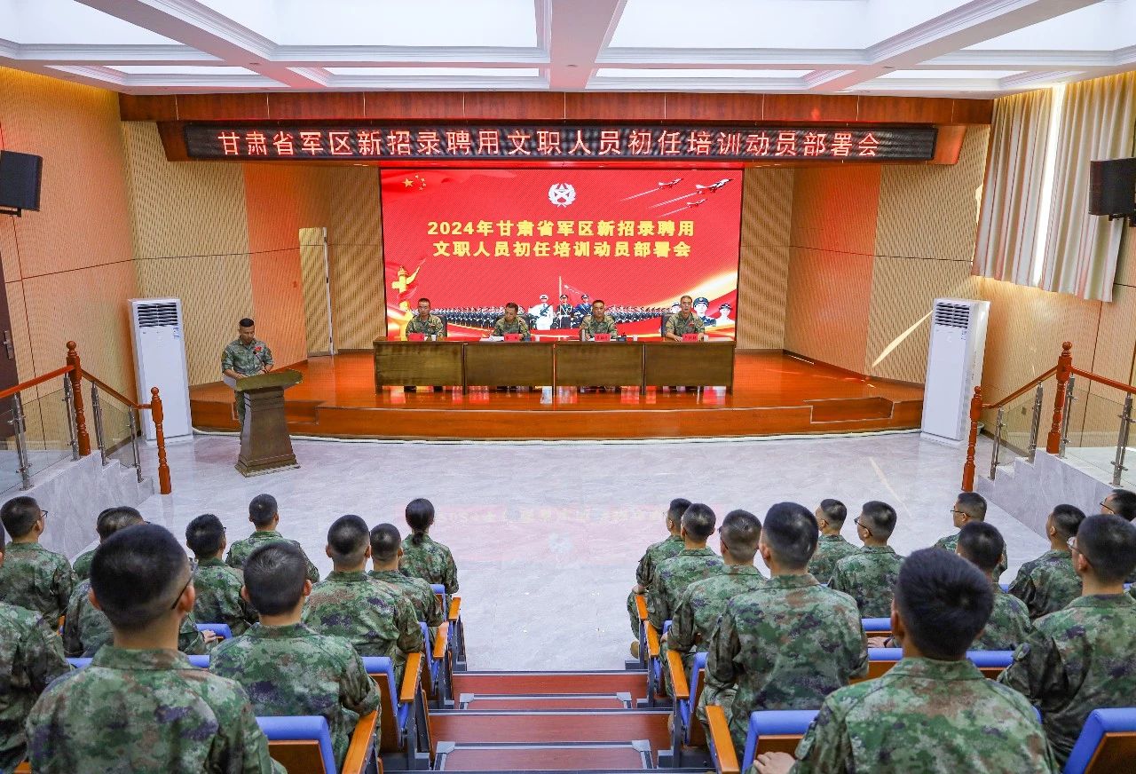 9月2日下午,甘肅省軍區(qū)綜合訓(xùn)練隊(duì)多功能教室內(nèi)軍歌嘹亮、掌聲熱烈,全區(qū)53名新招錄聘用文職人員整齊就座、精神振奮,參加初任培訓(xùn)動(dòng)員部署會(huì),省軍區(qū)政治工作局領(lǐng)導(dǎo)出席并作動(dòng)員輔導(dǎo)。