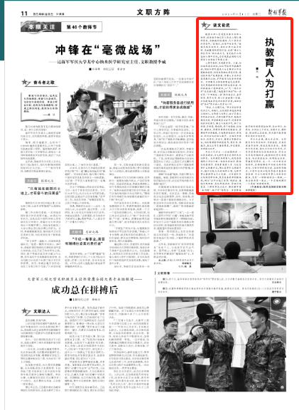 隨著文職人員制度改革不斷深入推進(jìn),越來越多的文職人員走上部隊教研崗位,承擔(dān)起科技強(qiáng)軍、人才強(qiáng)軍的職責(zé)使命。“國將興,必貴師而重傅。”奮進(jìn)在強(qiáng)軍征程上,他們以堅定獻(xiàn)身國防、至誠報國的理想信念,永葆“甘為人梯托青云”的本真本色,自覺把個人理想融入強(qiáng)軍實踐,為實現(xiàn)黨在新時代的強(qiáng)軍目標(biāo)貢獻(xiàn)了智慧力量。