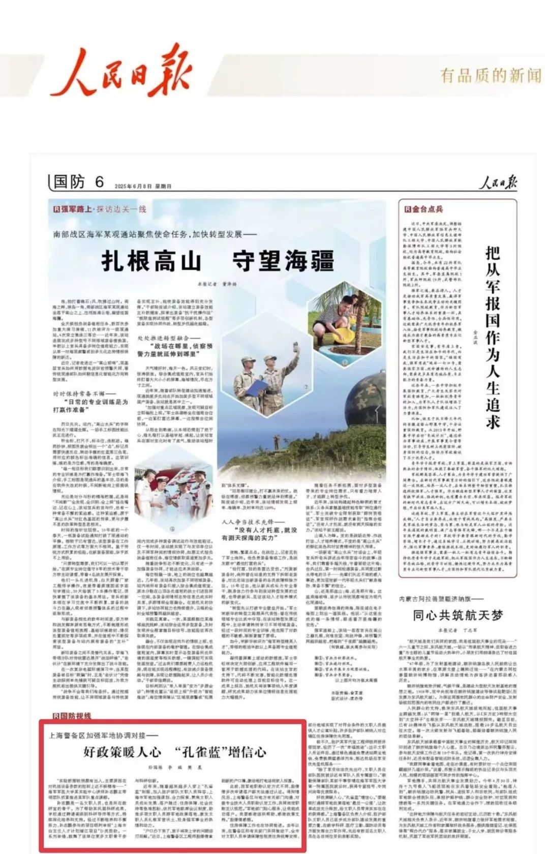 此前,因軍地職稱認定方式不同,殷倩倩多次申請落戶都無法通過認證。得知情況后,上海警備區(qū)與地方有關(guān)部門溝通,對接專業(yè)技術(shù)人員職稱認定工作,共同商定職稱互認規(guī)范。“軍地部門貼心服務(wù),讓我能成功落戶。我要感謝組織幫助,感謝政策支持。”殷倩倩感慨。