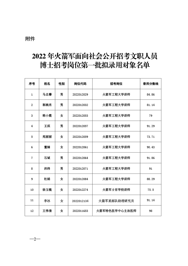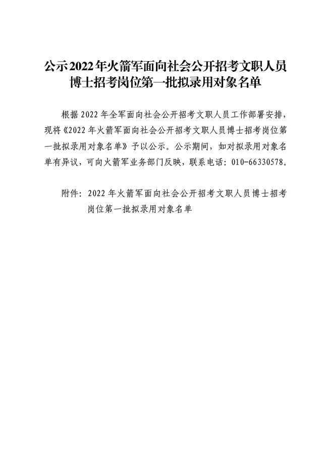 原文標(biāo)題:公示2022年火箭軍面向社會(huì)公開招考文職人員博士招考崗位第一批擬錄用對(duì)象名單