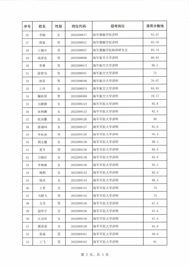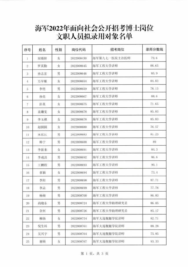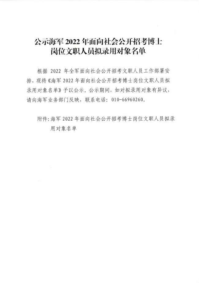 原文標(biāo)題:公示海軍2022年面向社會公開招考博士崗位文職人員擬錄用對象名單