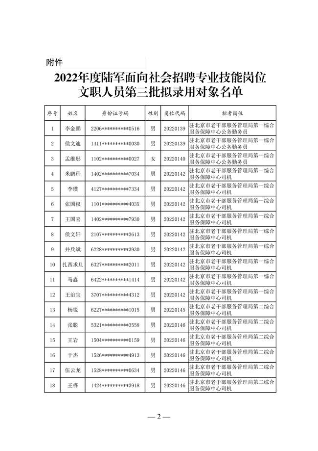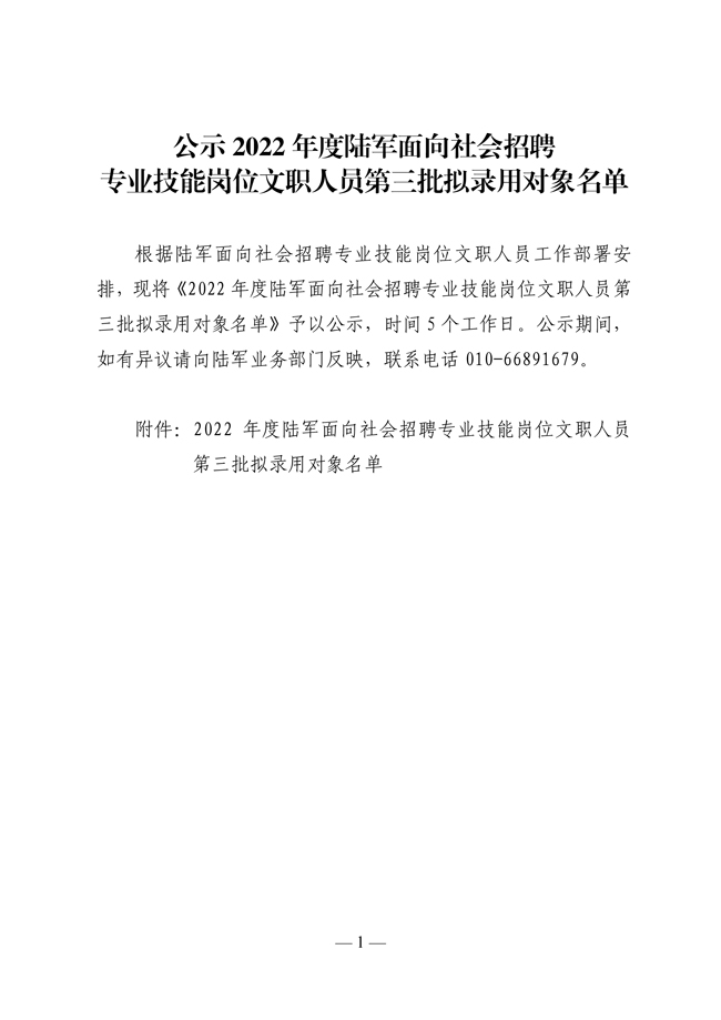 原文標題:公示2022年度陸軍面向社會招聘專業(yè)技能崗位文職人員第三批擬錄用對象名單