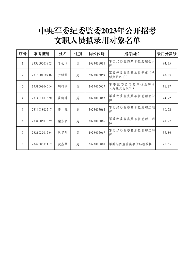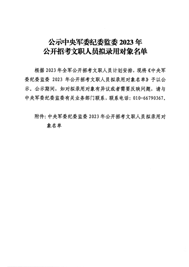 原文標題:公示中央軍委紀委監(jiān)委2023年 公開招考文職人員擬錄用對象名單