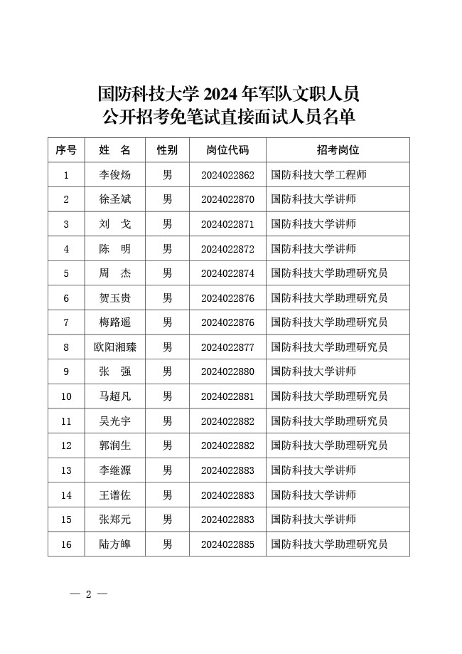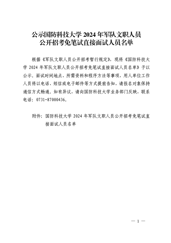 原文標(biāo)題:公示國防科技大學(xué)2024年軍隊(duì)文職人員公開招考免筆試直接面試人員名單