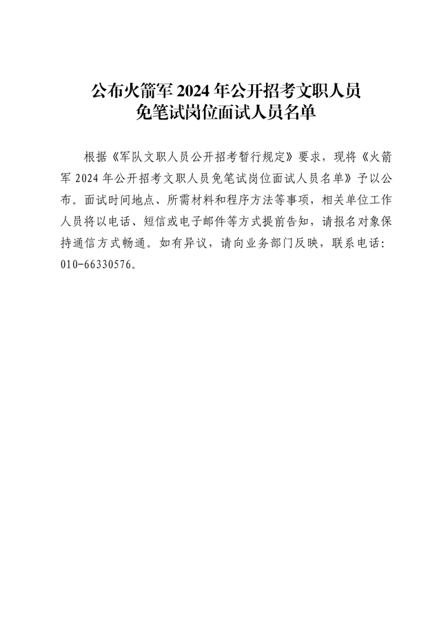 原文標題:公布火箭軍2024年公開招考文職人員免筆試崗位面試人員名單