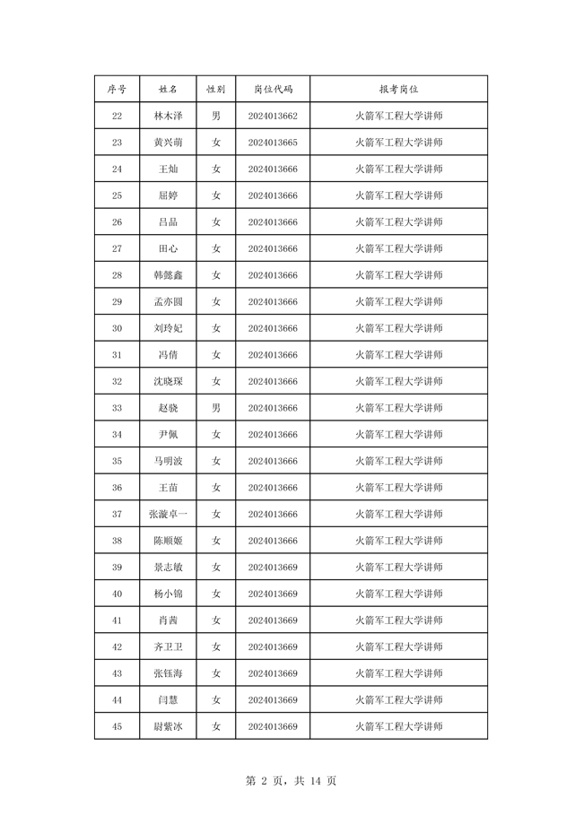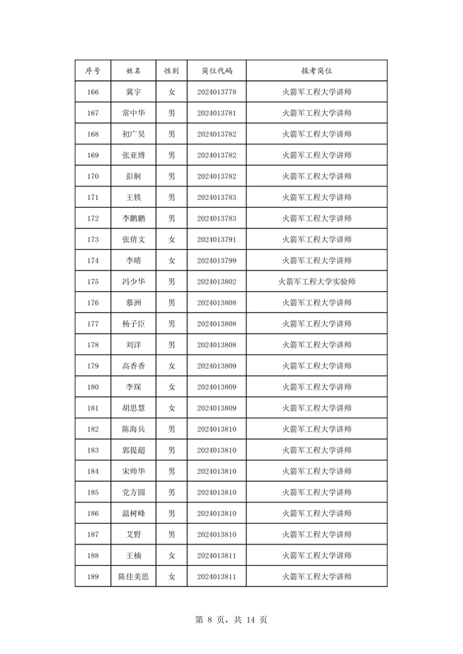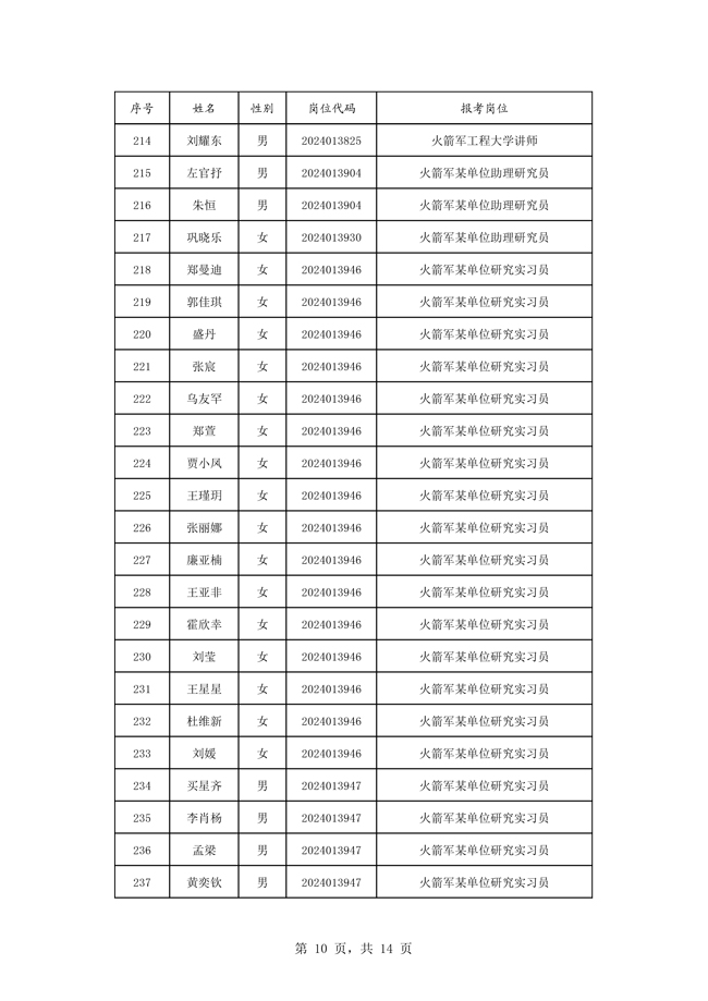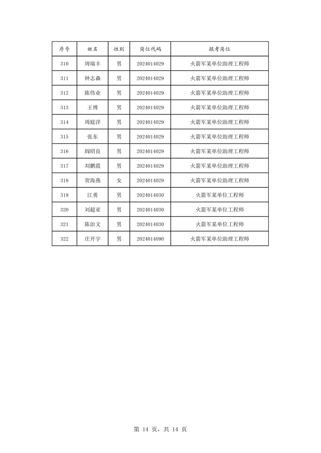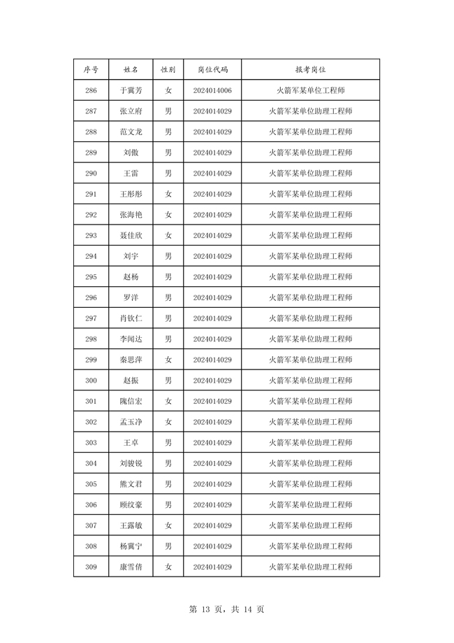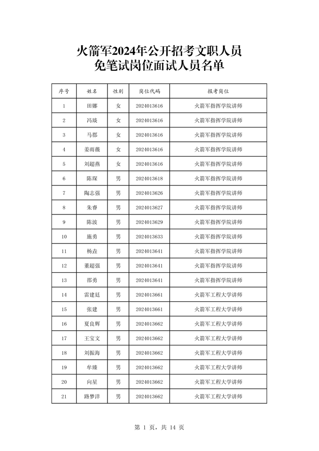 火箭軍2024年公開招考文職人員 免筆試崗位面試人員名單322人
