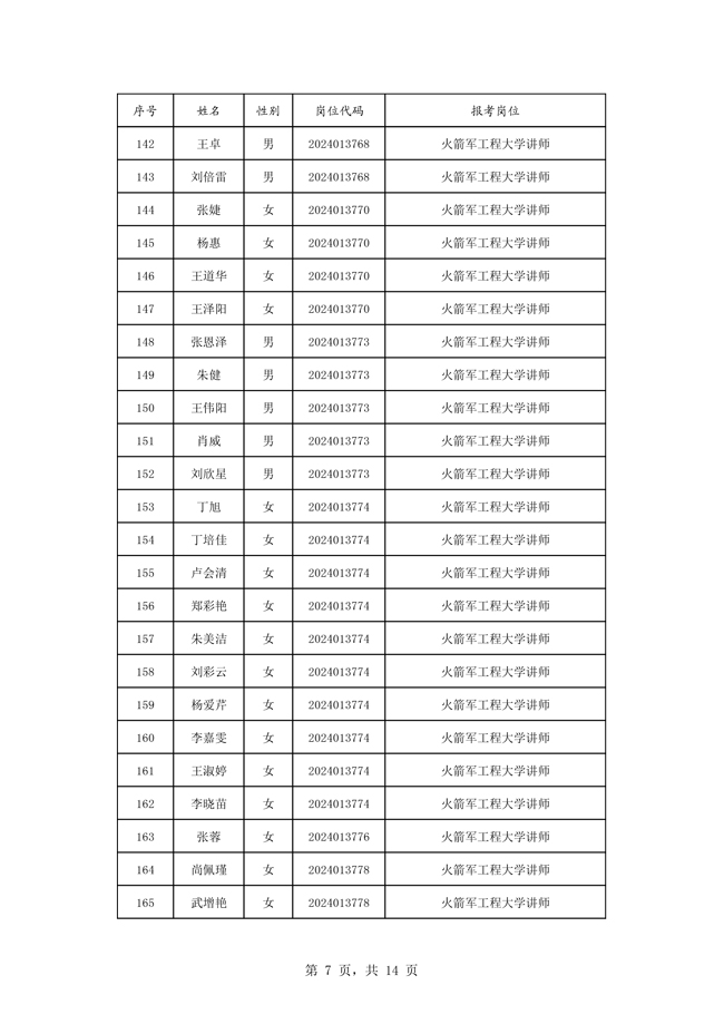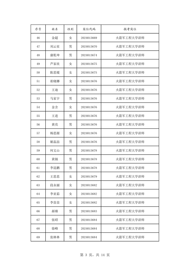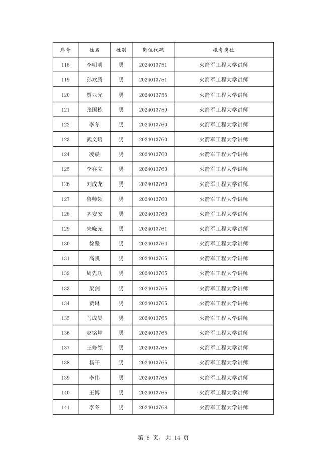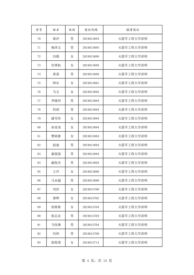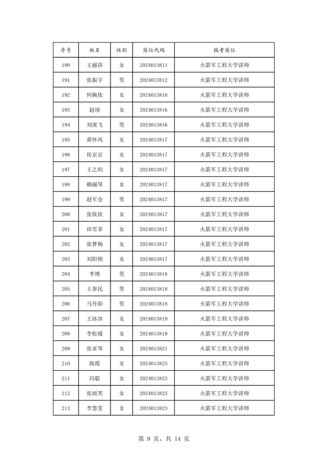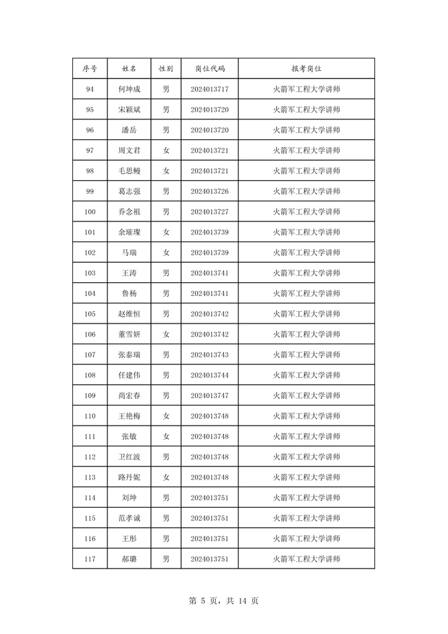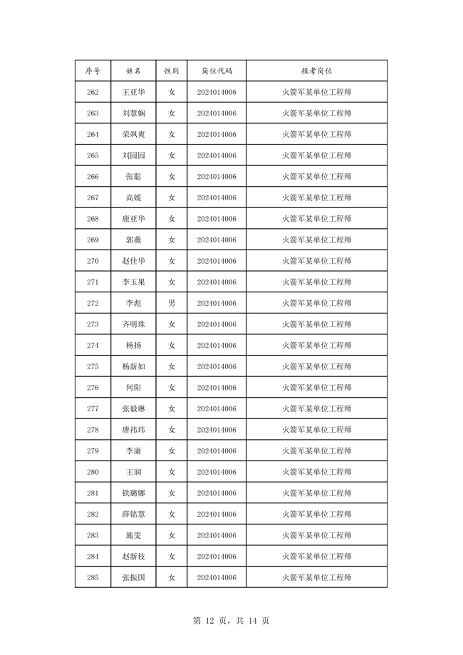 火箭軍2024年公開招考文職人員 免筆試崗位面試人員名單322人