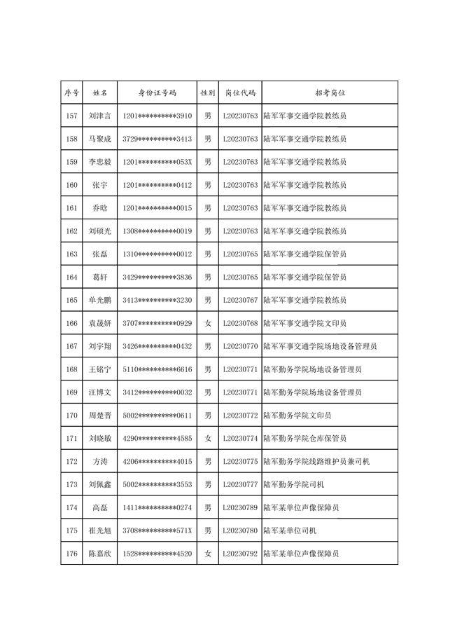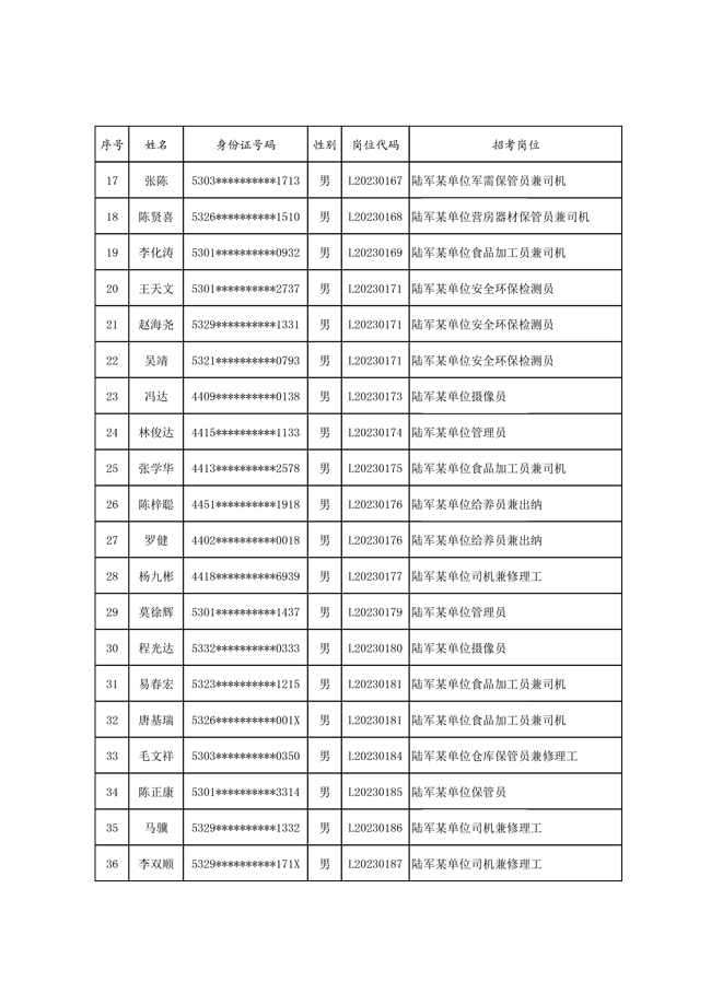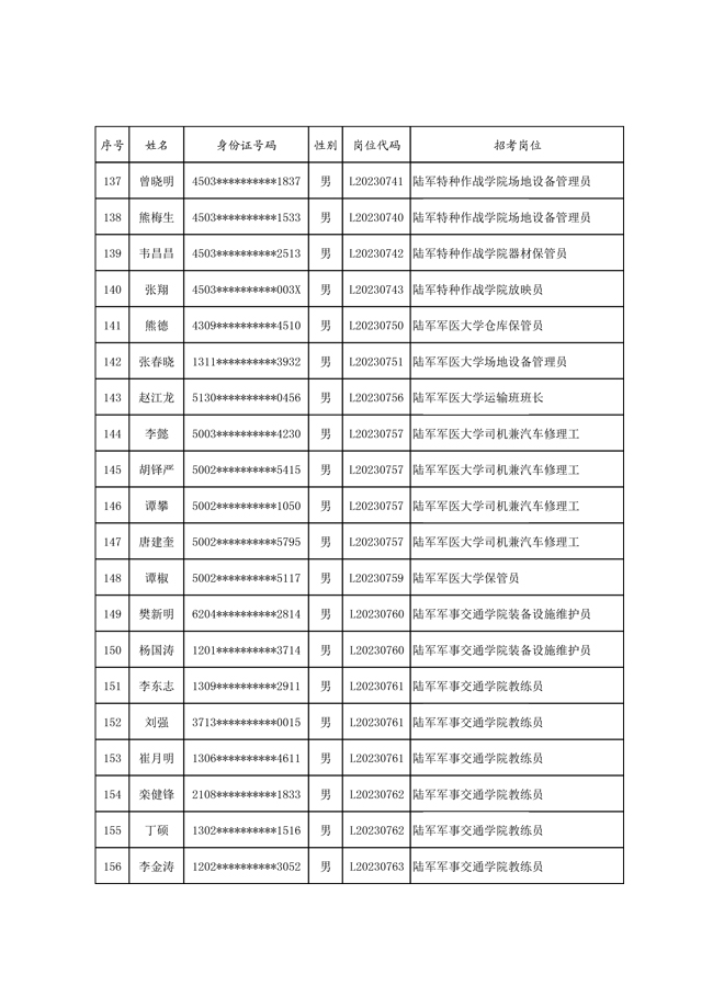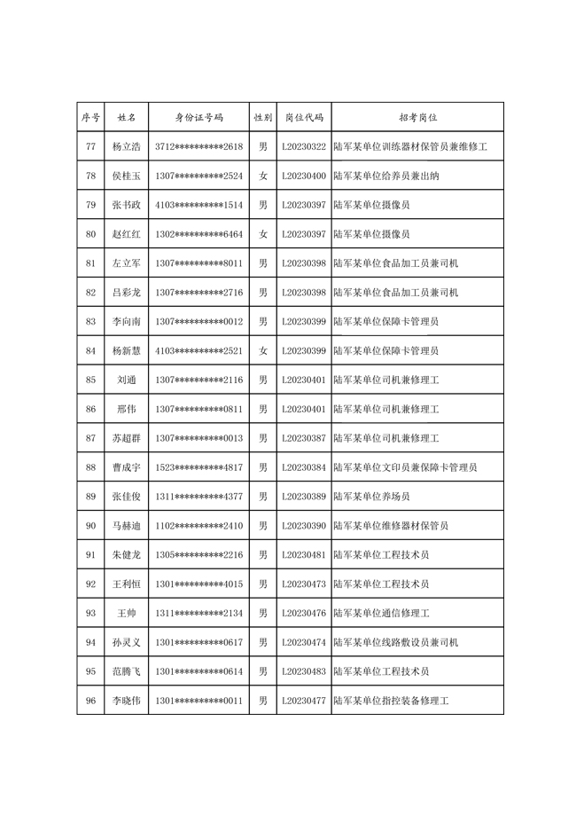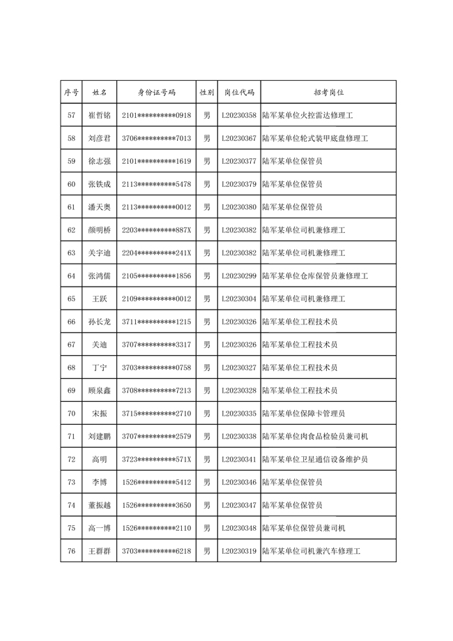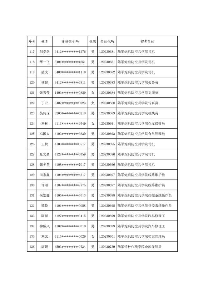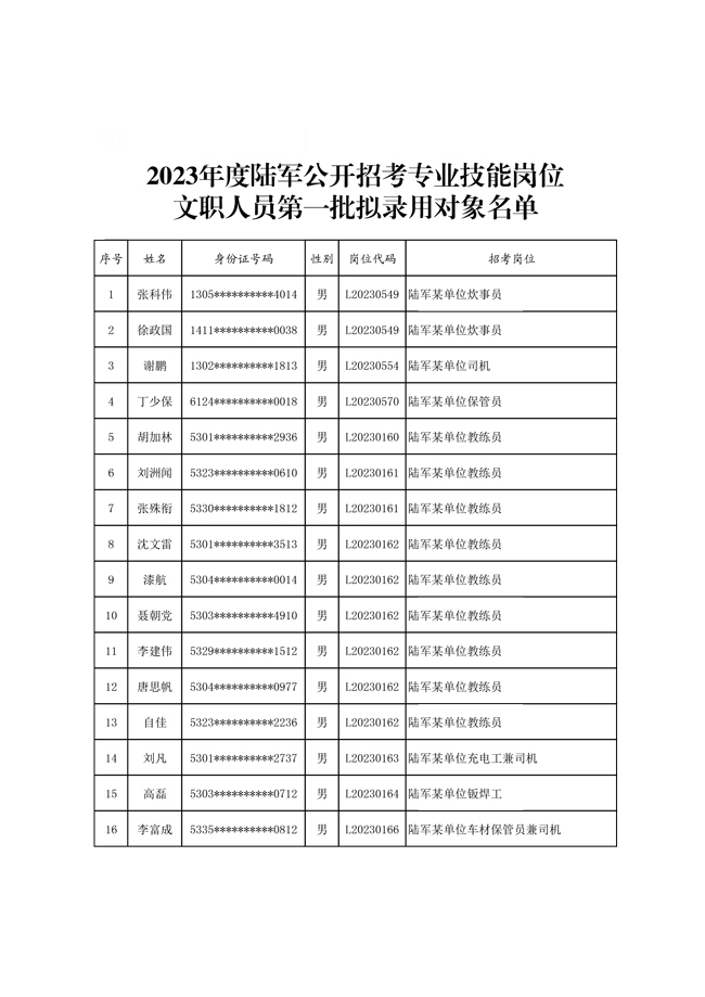 原文標(biāo)題:公示2023年度陸軍公開(kāi)招考專業(yè)技能崗位文職人員第一批擬錄用對(duì)象名單