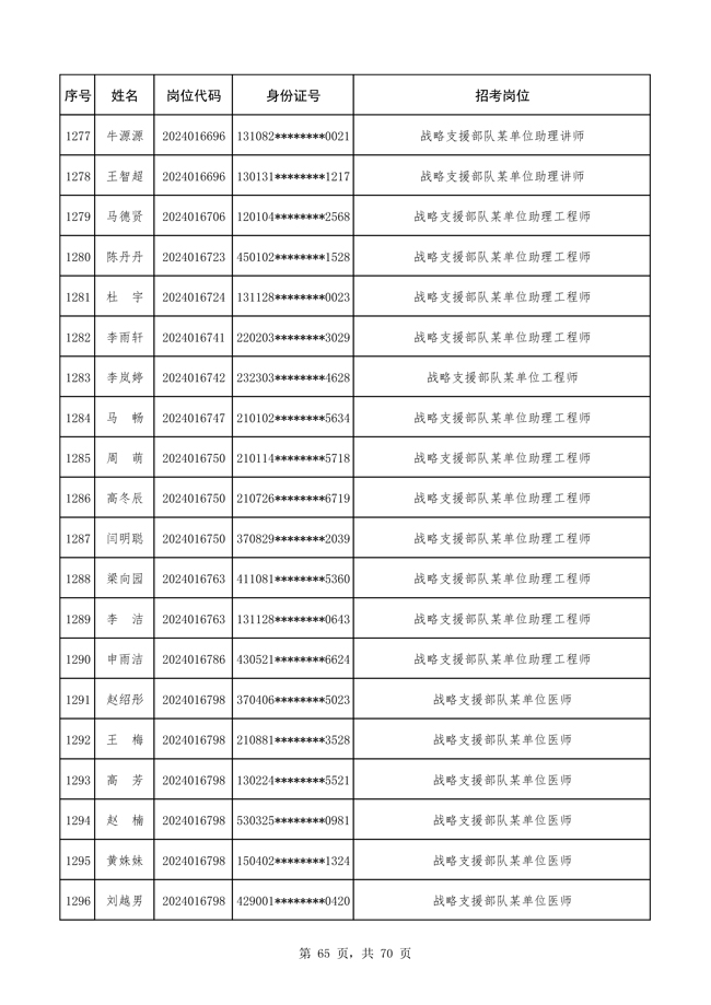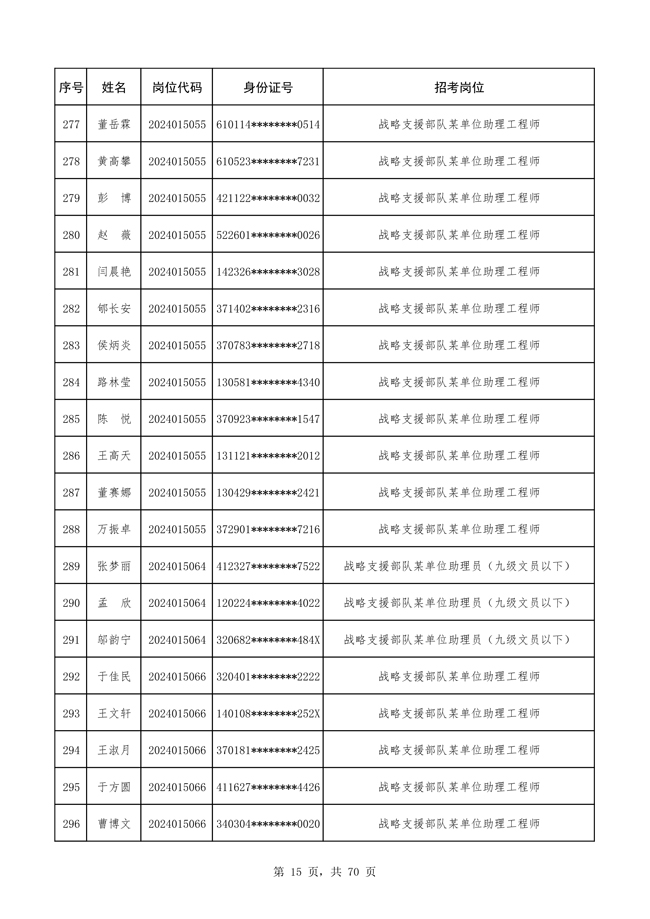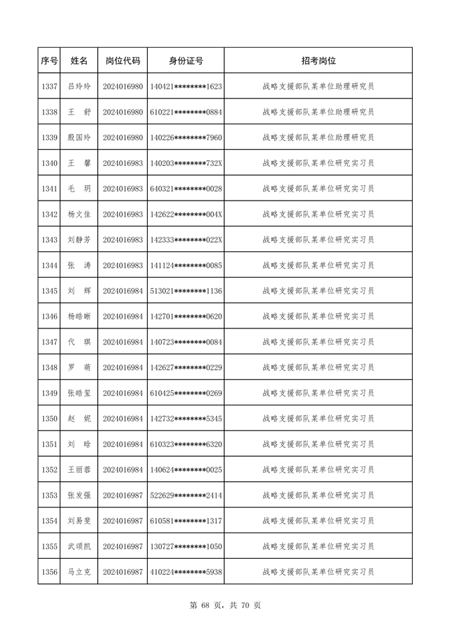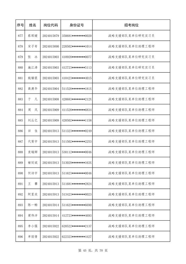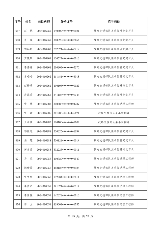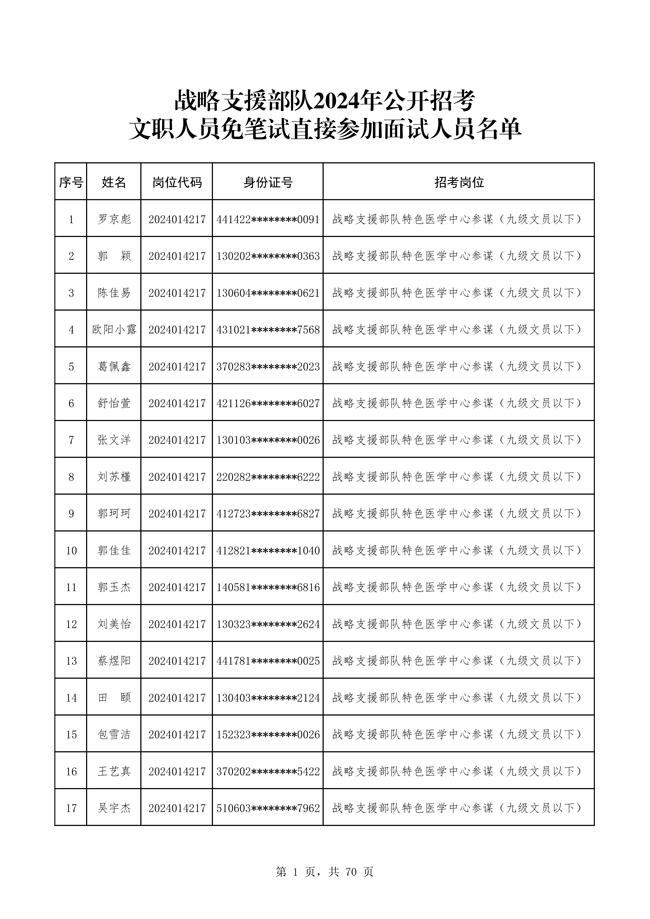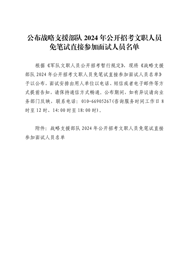 原文標(biāo)題:公布戰(zhàn)略支援部隊2024年公開招考文職人員 免筆試直接參加面試人員名單