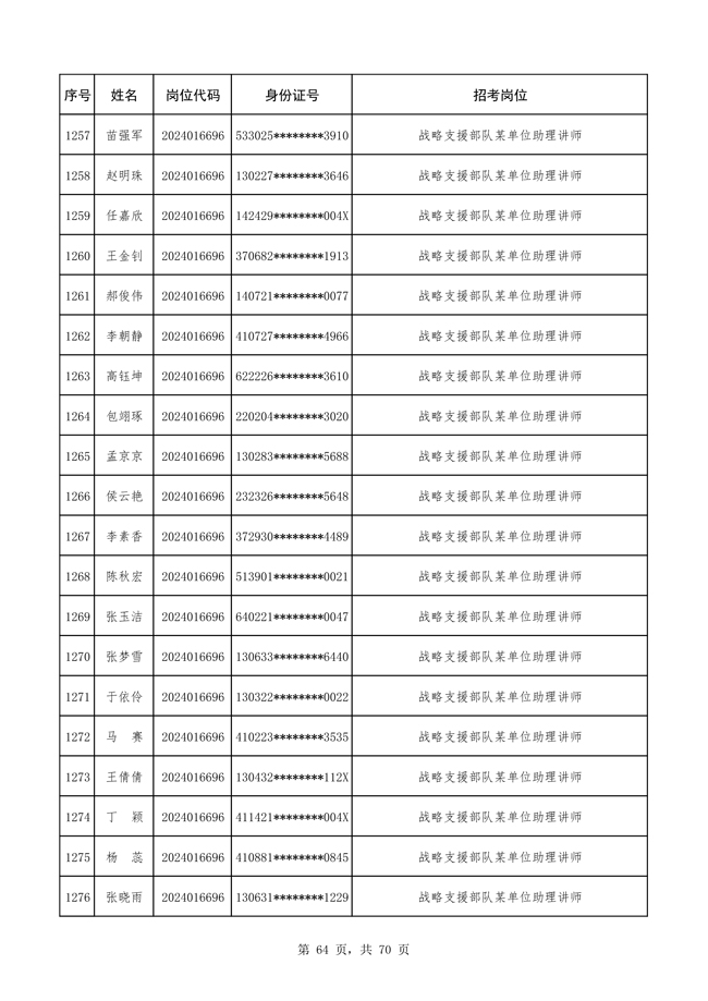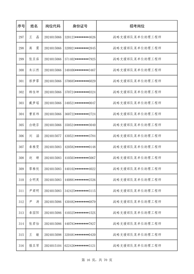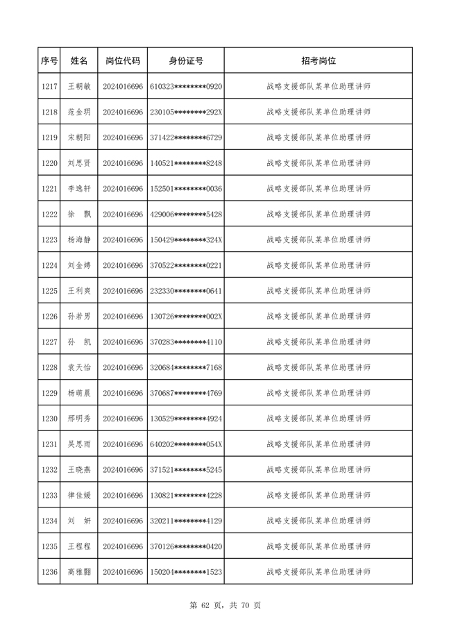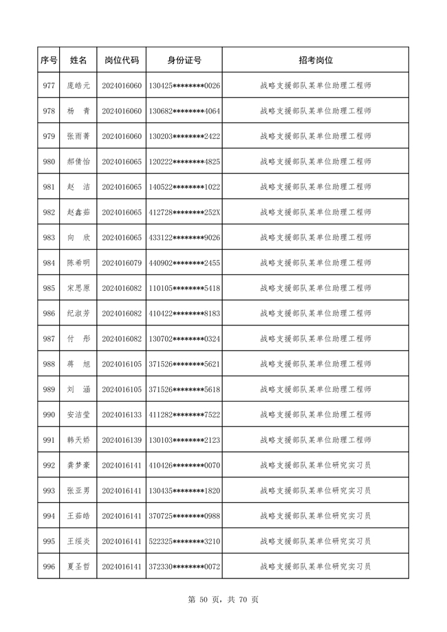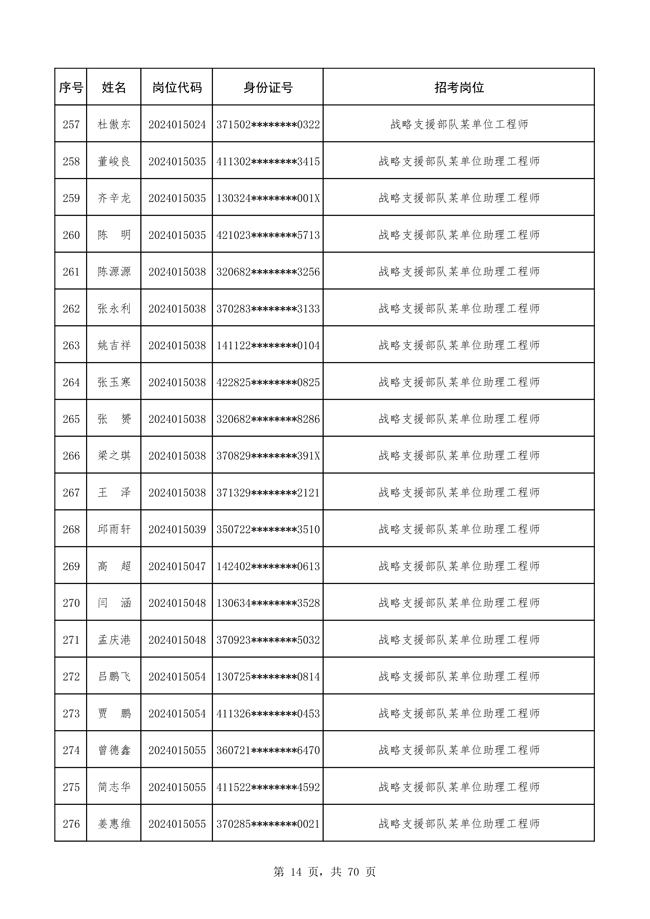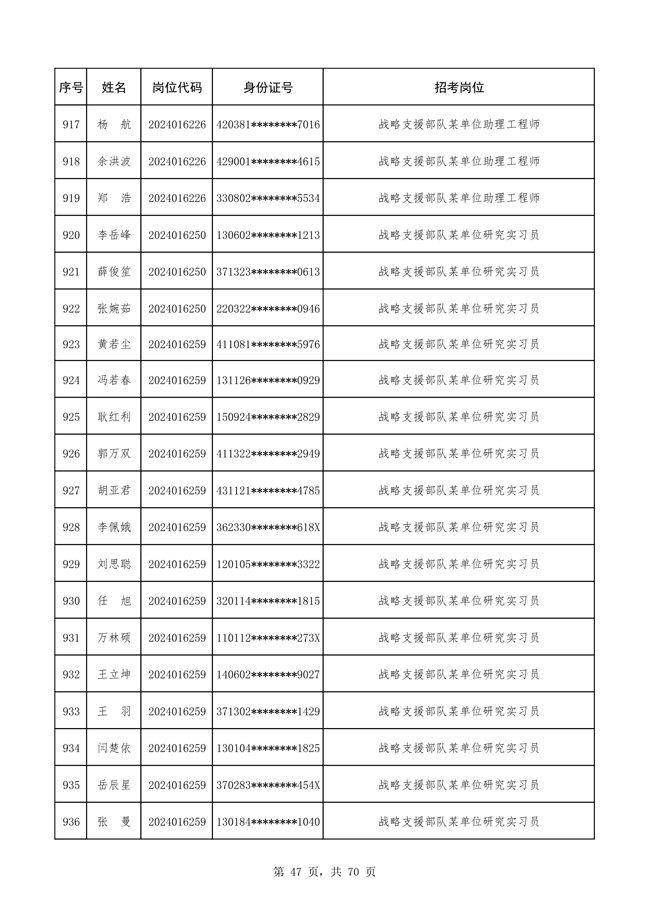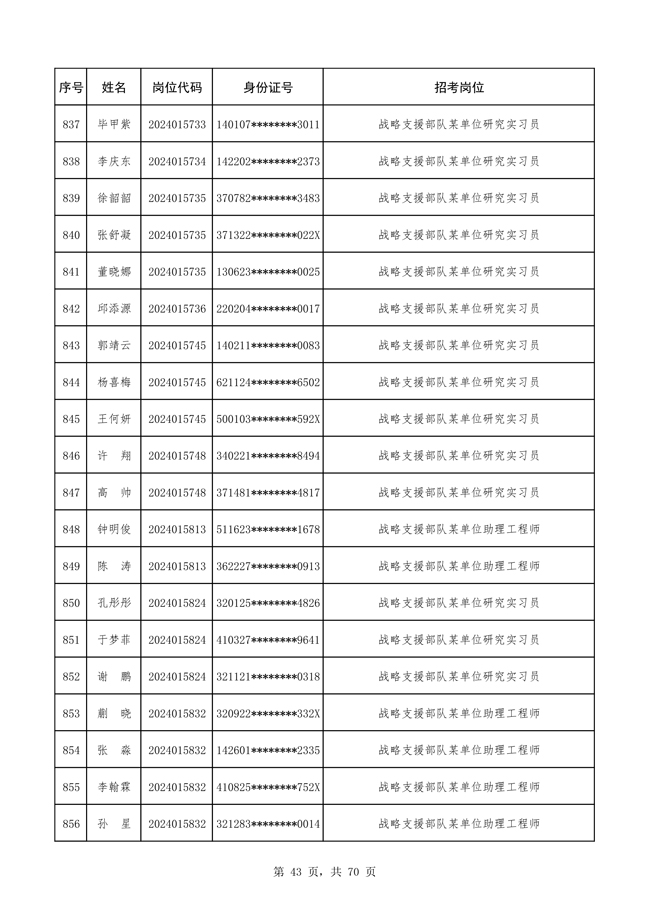 原文標(biāo)題:公布戰(zhàn)略支援部隊2024年公開招考文職人員 免筆試直接參加面試人員名單