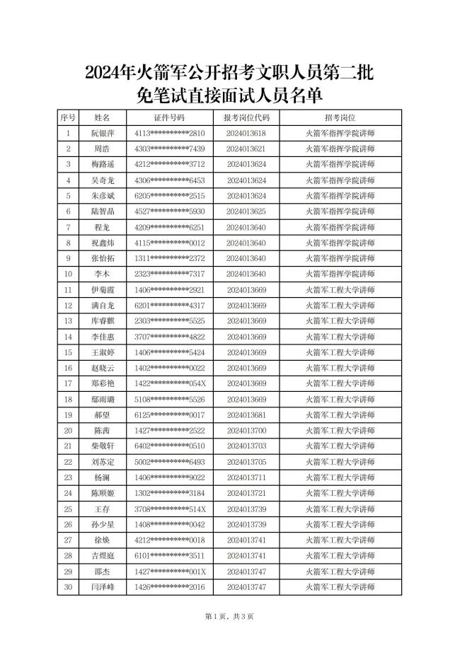 原文標(biāo)題:公布2024年火箭軍公開招考文職人員第二批免筆試直接面試人員名單