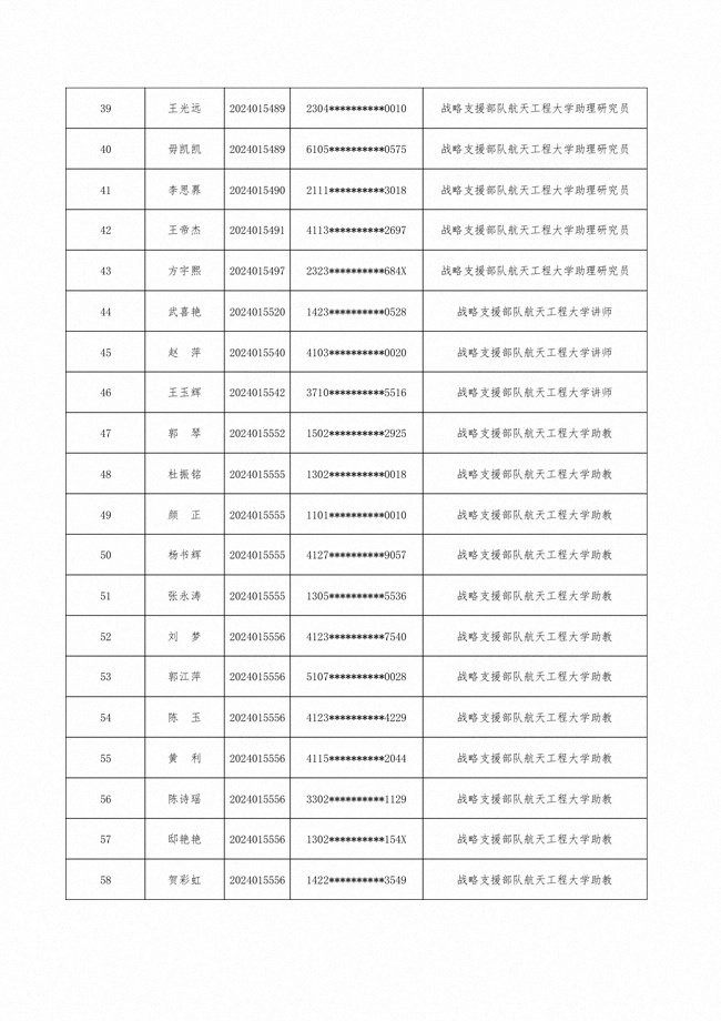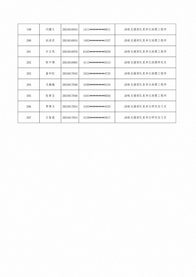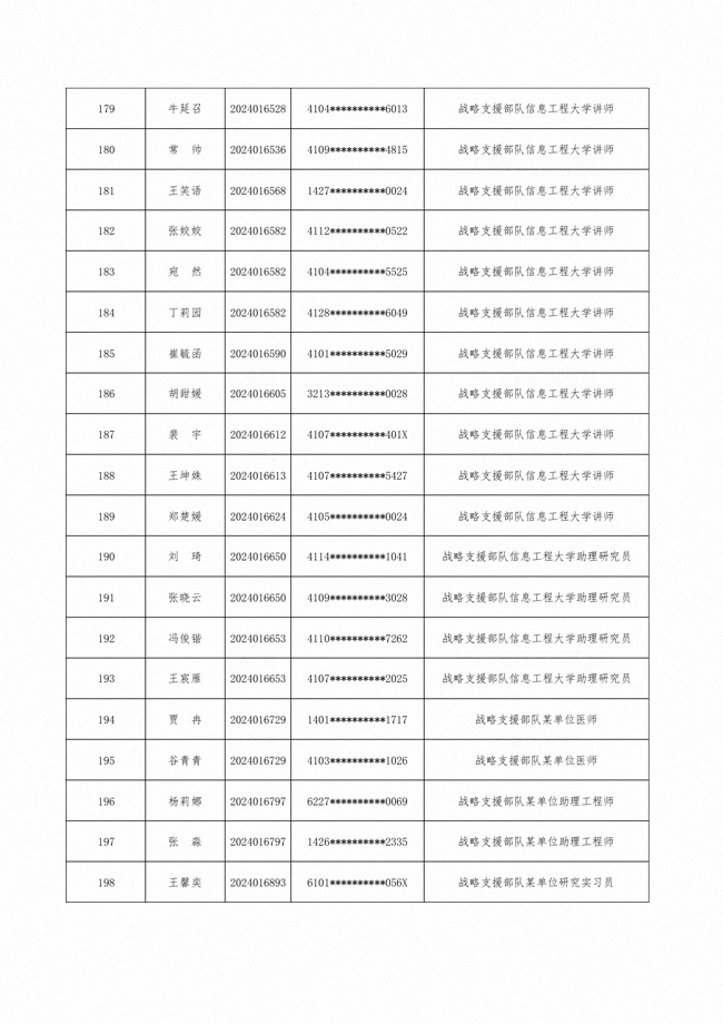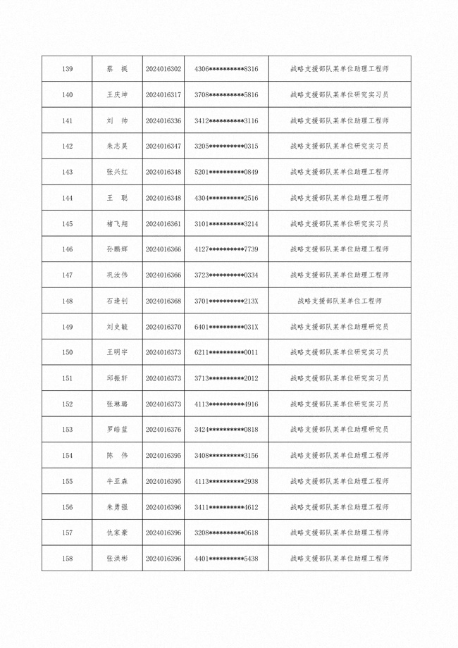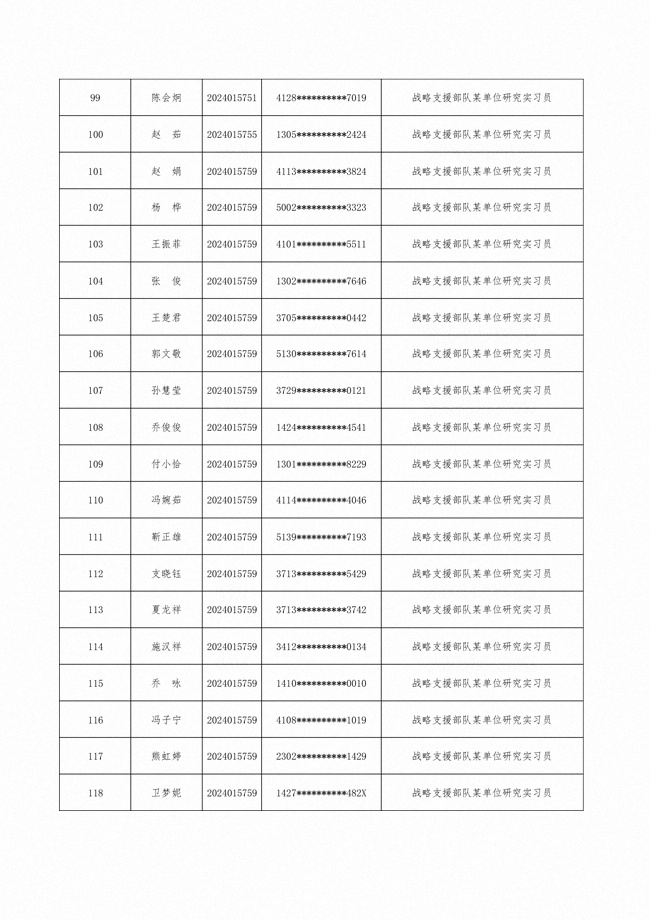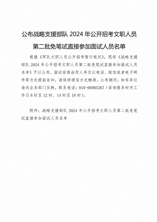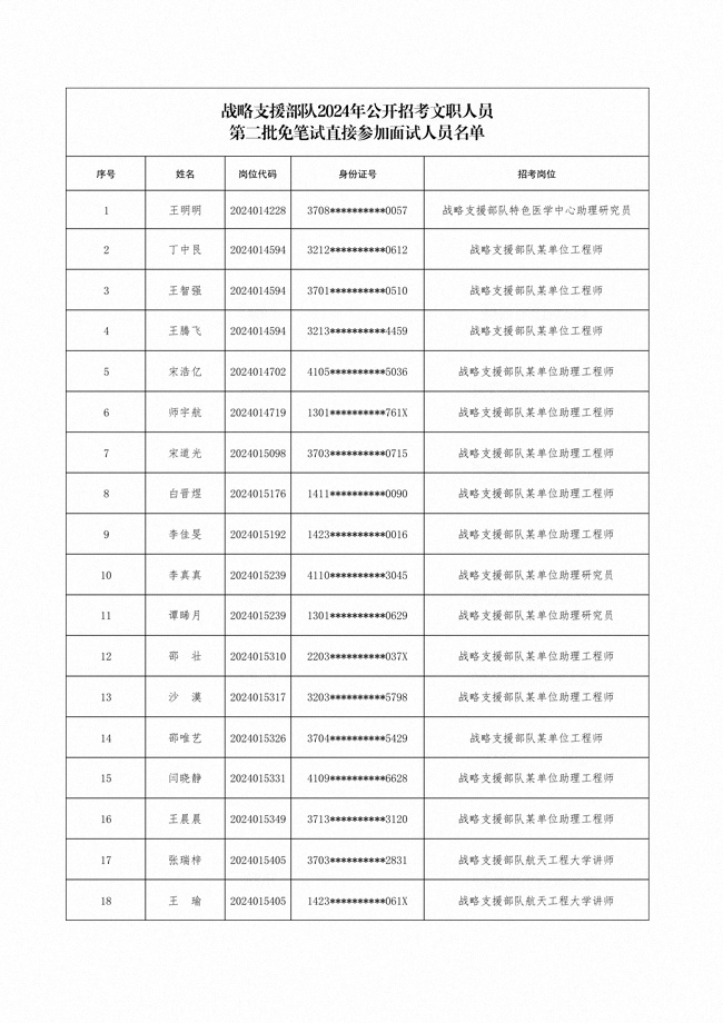 原文標(biāo)題:公布戰(zhàn)略支援部隊2024年公開招考文職人員第二批免筆試直接參加面試人員名單