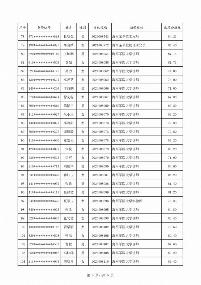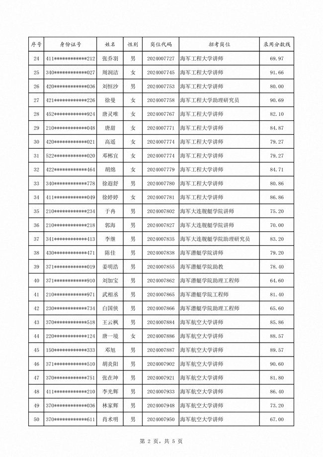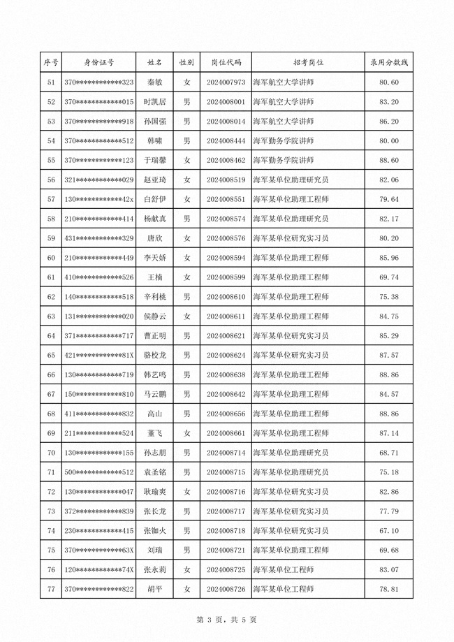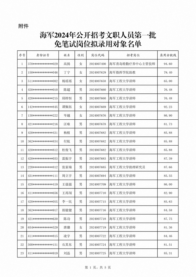 原文標(biāo)題:公示2024年海軍公開招考文職人員第一批免筆試崗位擬錄用對(duì)象名單