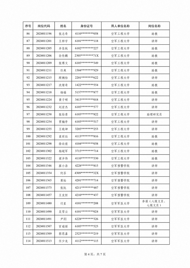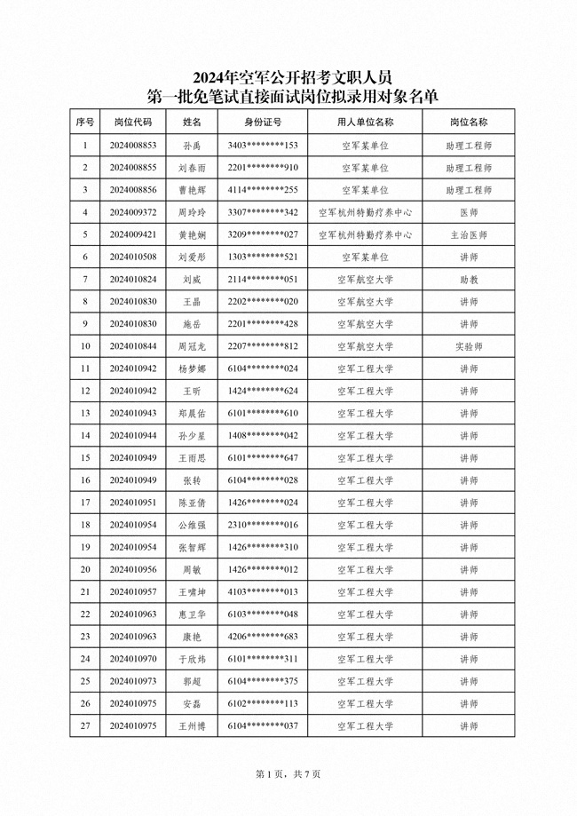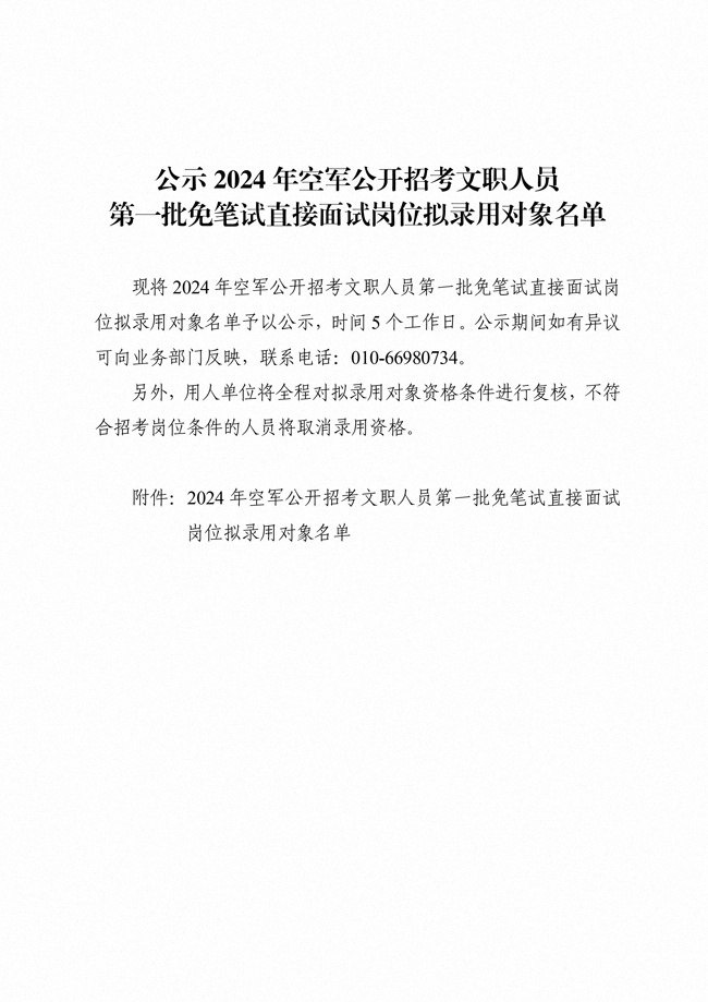 原文標題:公示2024年空軍公開招考文職人員第一批免筆試直接面試崗位擬錄用對象名單