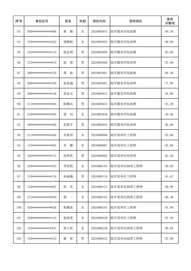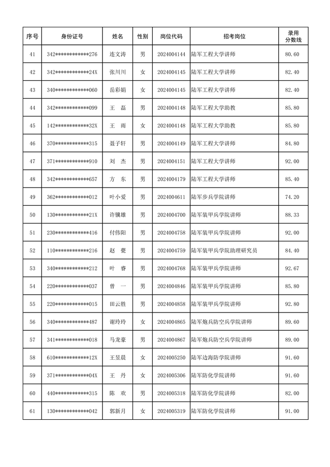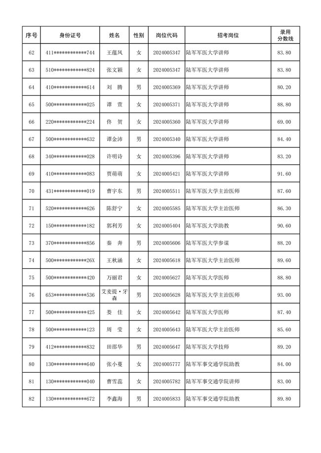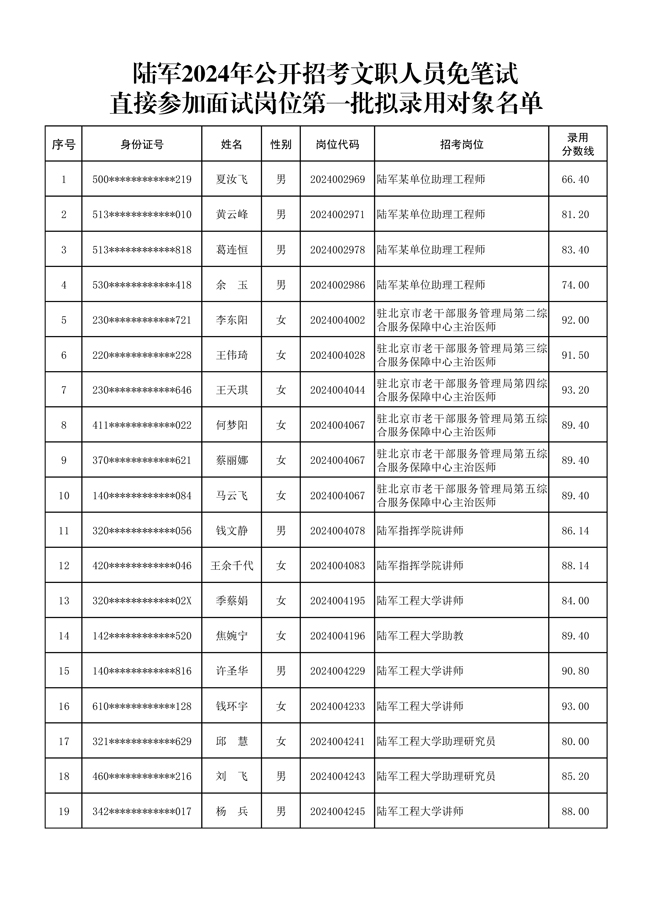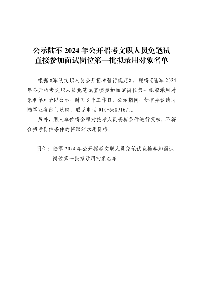 原文標(biāo)題:公示陸軍2024年公開招考文職人員免筆試直接參加面試崗位第一批擬錄用對(duì)象名單