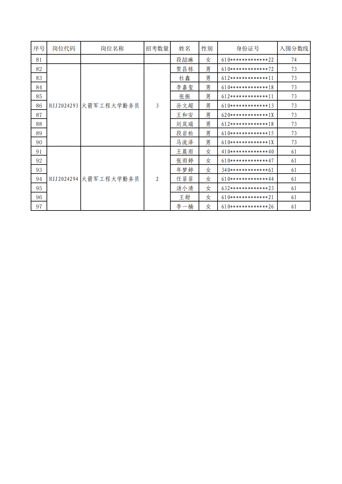 2025年武裝部文職人員擬錄用名單(含上岸分數(shù)線) 2025-10-09