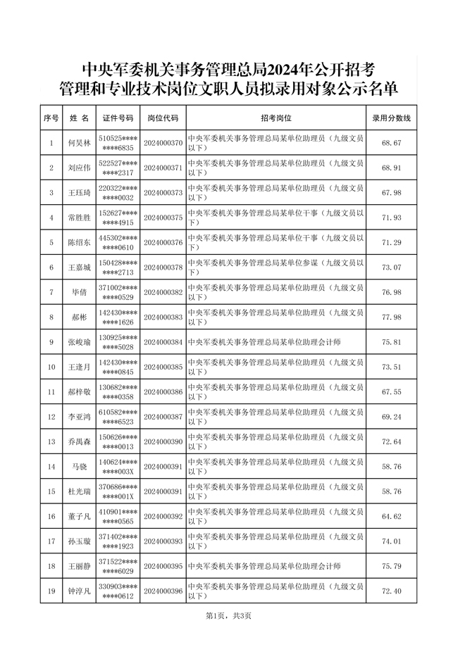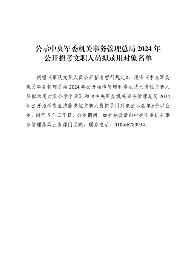 原文標(biāo)題:公示中央軍委機(jī)關(guān)事務(wù)管理總局2024年公開招考文職人員擬錄用對(duì)象名單
