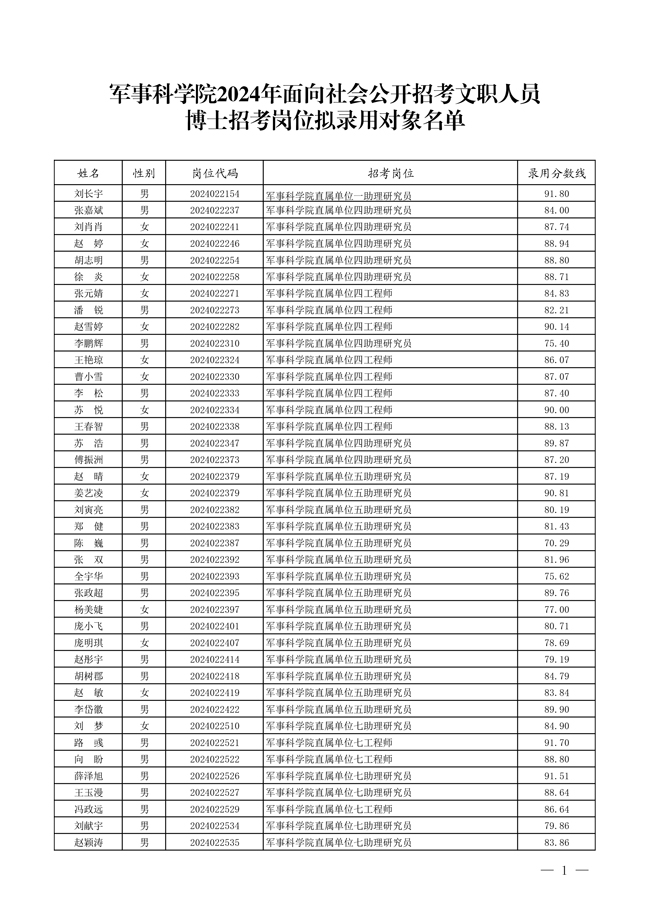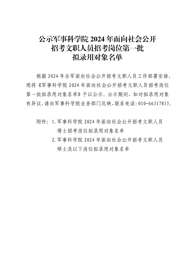 原文標(biāo)題:公示軍事科學(xué)院2024年面向社會公開招考文職人員招考崗位第一批擬錄用對象名單