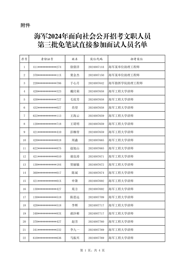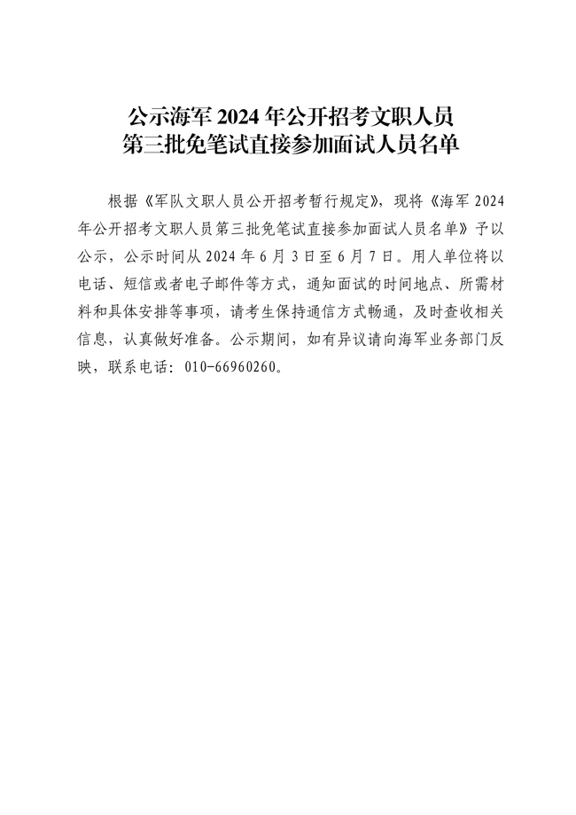 原文標(biāo)題:公示海軍2024年公開(kāi)招考文職人員第三批免筆試直接參加面試人員名單