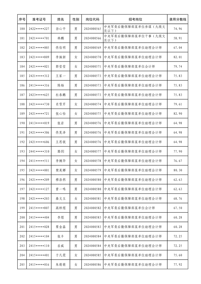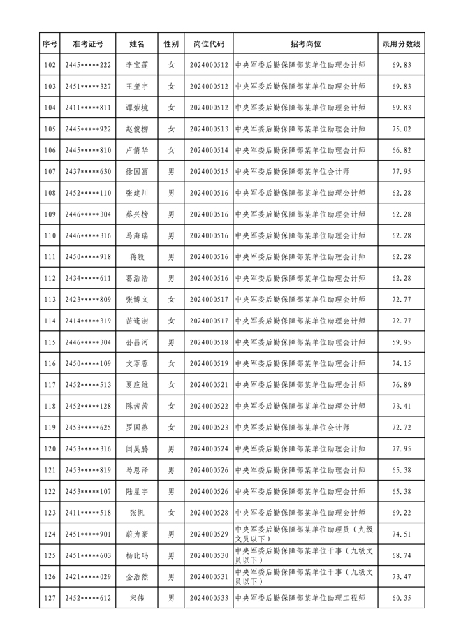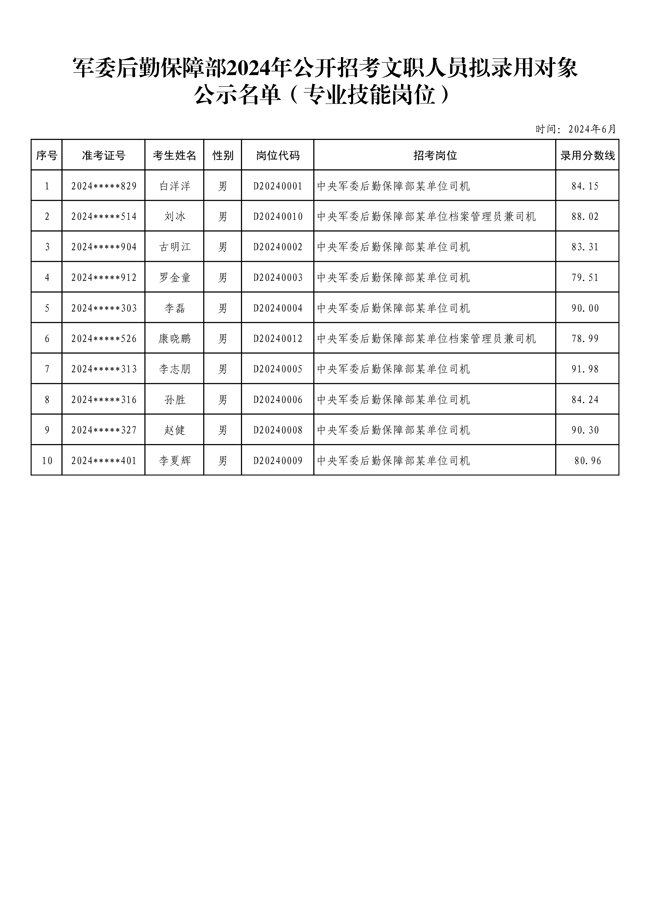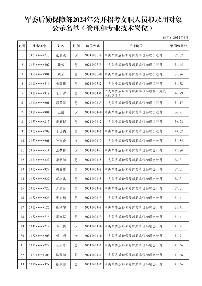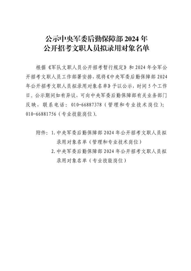 原文標(biāo)題:公示中央軍委后勤保障部2024年公開招考文職人員擬錄用對象名單