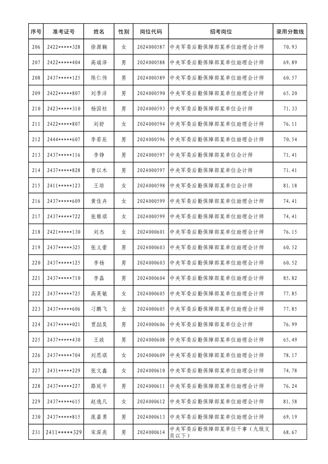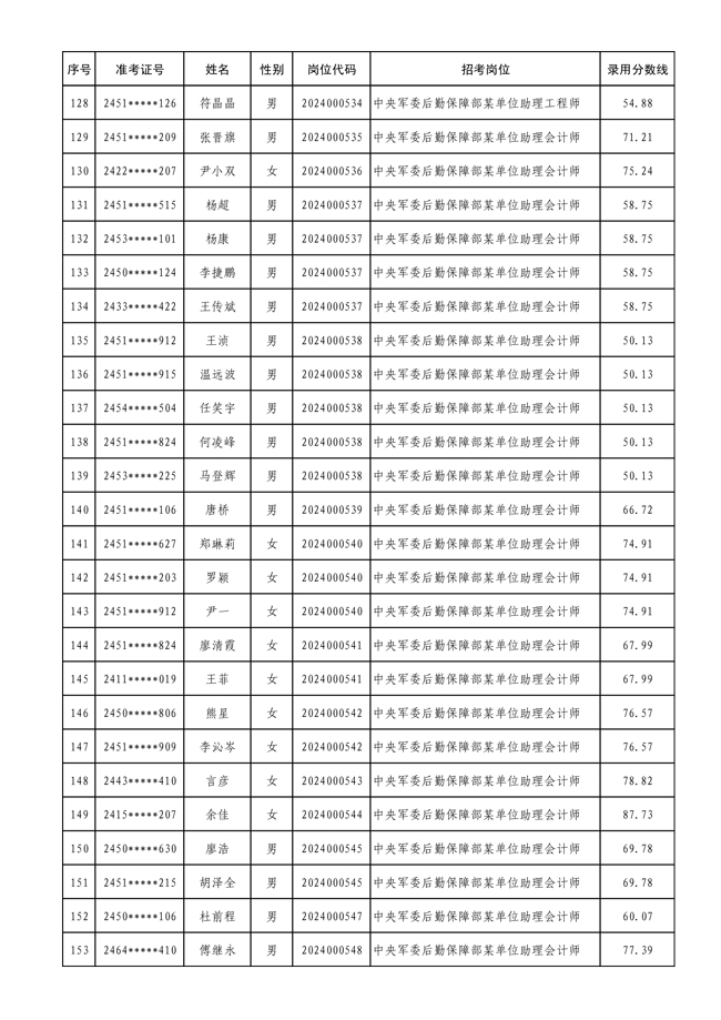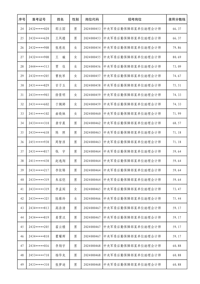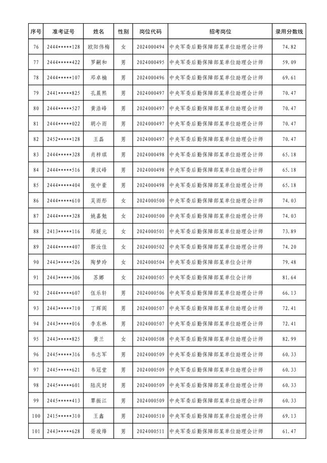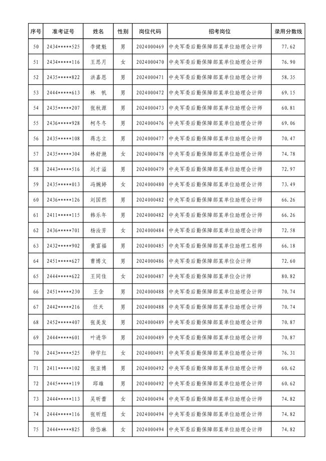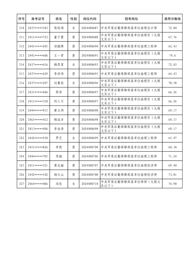 原文標(biāo)題:公示中央軍委后勤保障部2024年公開招考文職人員擬錄用對象名單