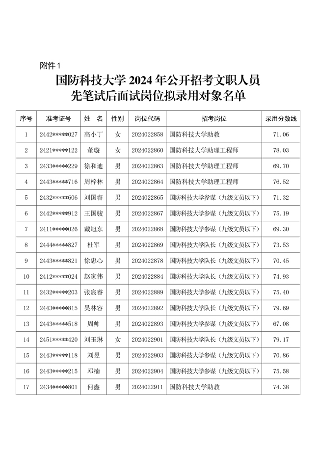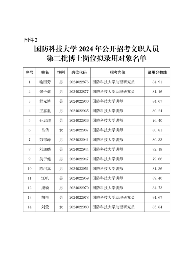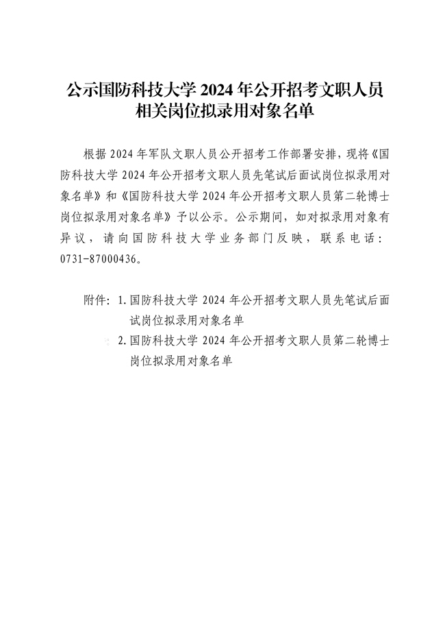 原文標(biāo)題:公示國防科技大學(xué)2024年公開招考文職人員相關(guān)崗位擬錄用對(duì)象名單
