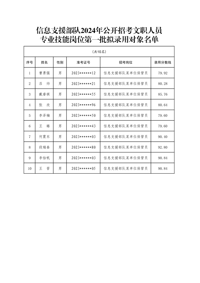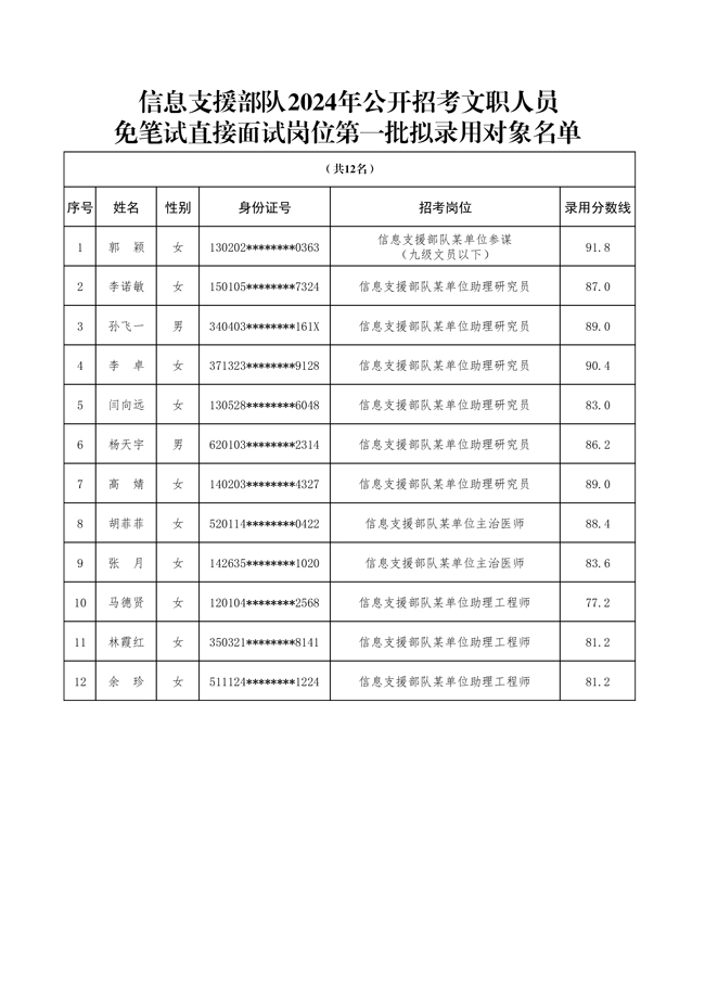 原文標(biāo)題:公示信息支援部隊(duì)2024年公開招考文職人員第一批擬錄用對(duì)象名單