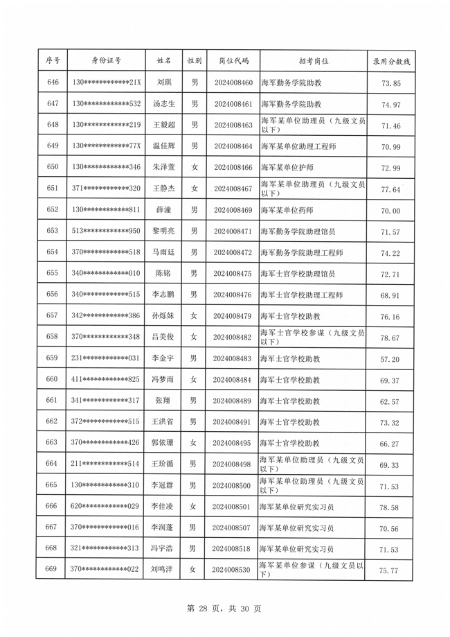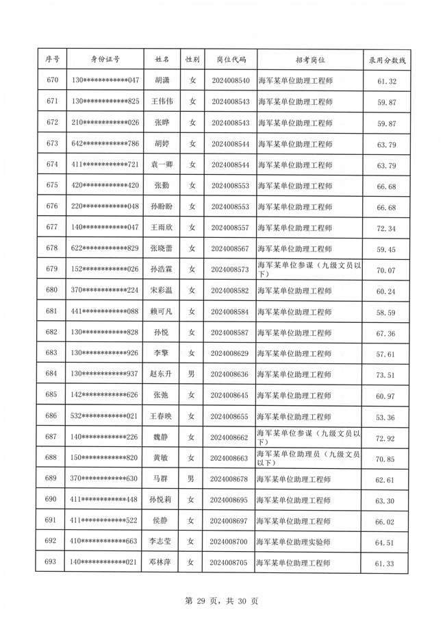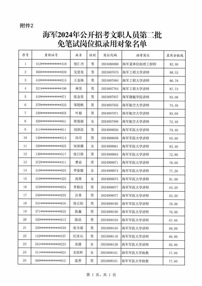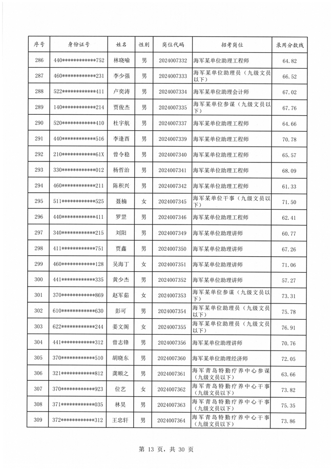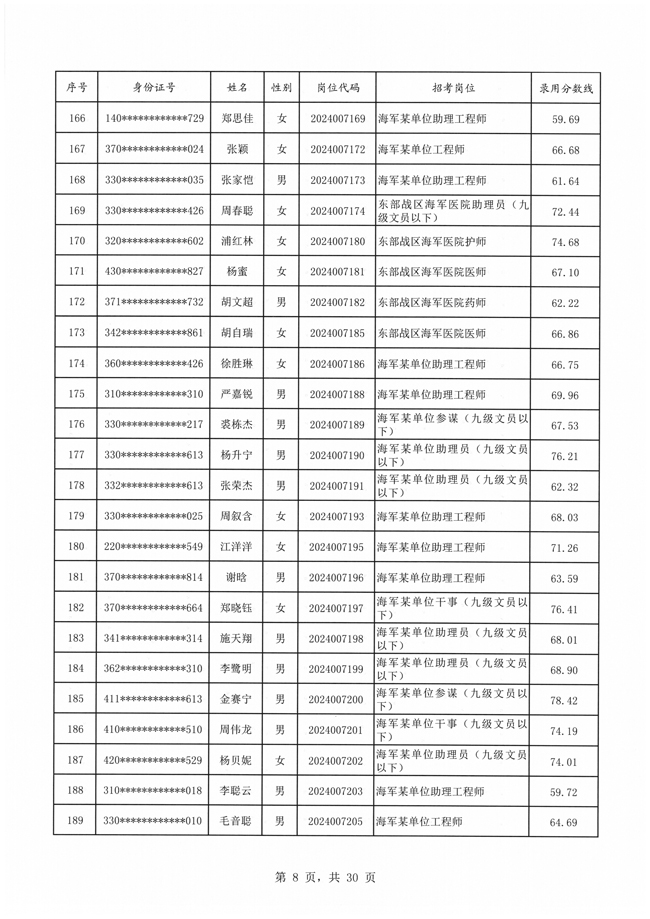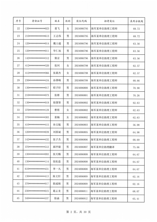 原文標題:公示2024年海軍面向社會公開招考文職人員第二批擬錄用對象名單
