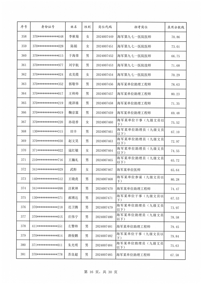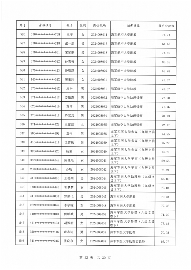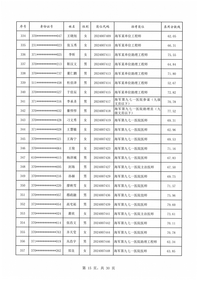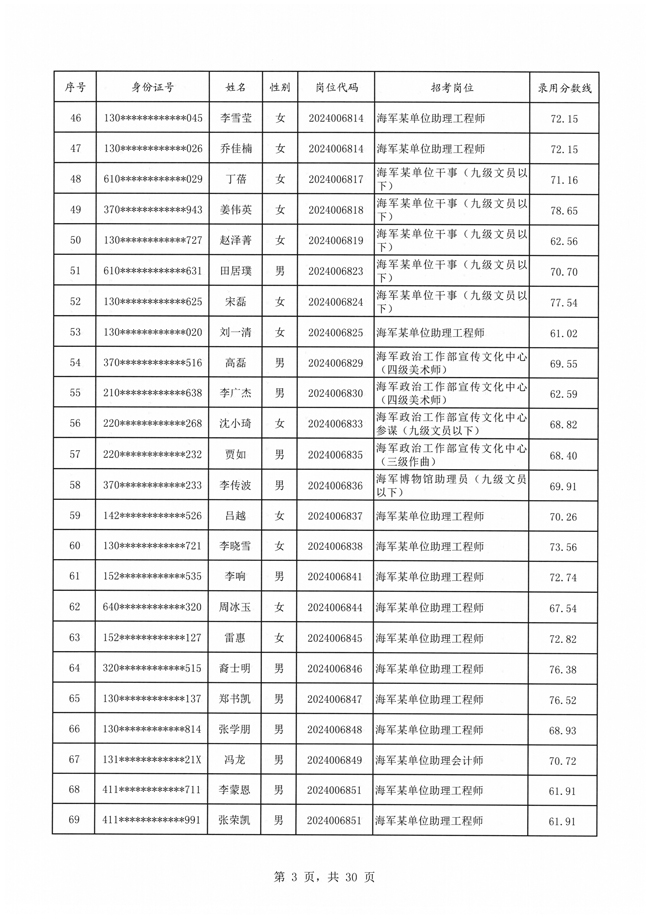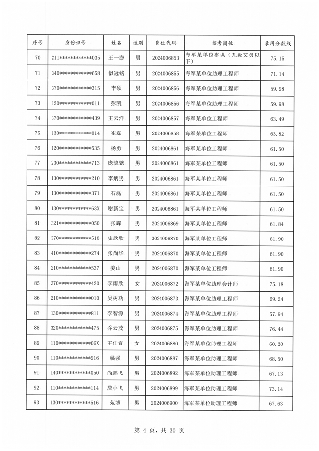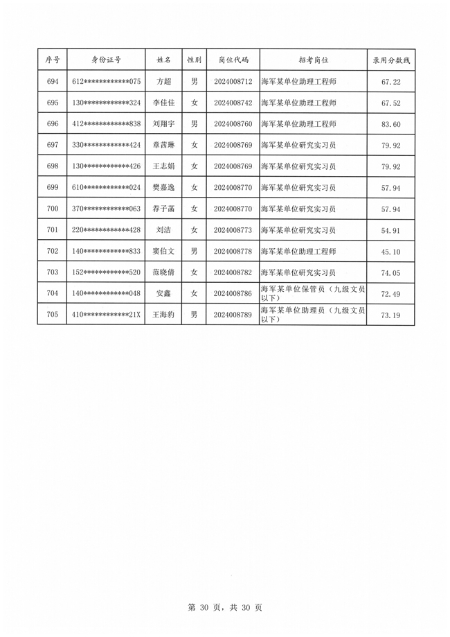 原文標題:公示2024年海軍面向社會公開招考文職人員第二批擬錄用對象名單