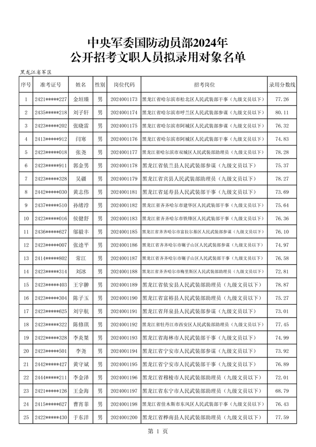 原文標(biāo)題:中央軍委國(guó)防動(dòng)員部2024年公開(kāi)招考文職人員擬錄用對(duì)象名單