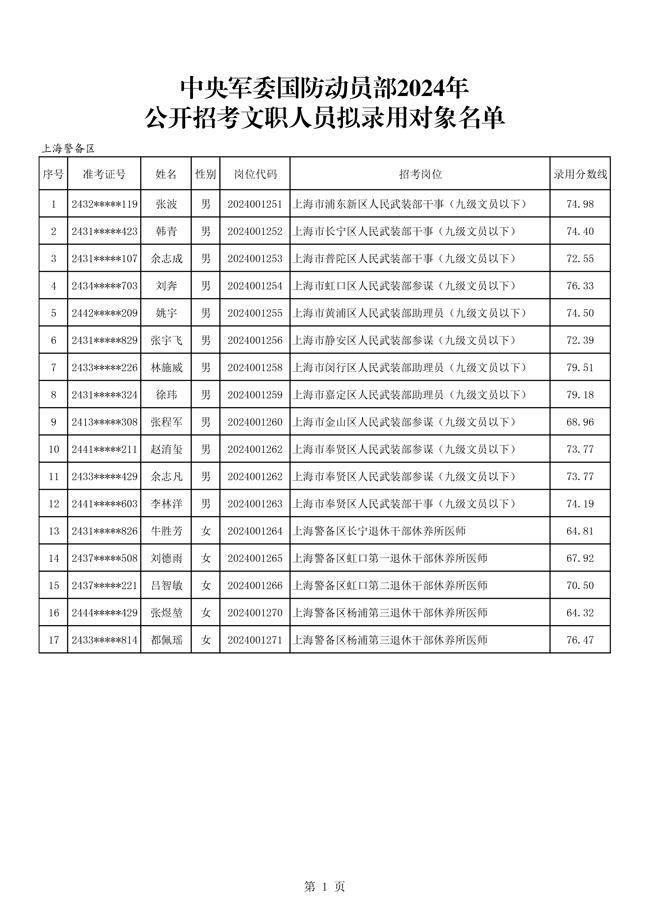 原文標(biāo)題:中央軍委國防動員部2024年公開招考文職人員擬錄用對象名單