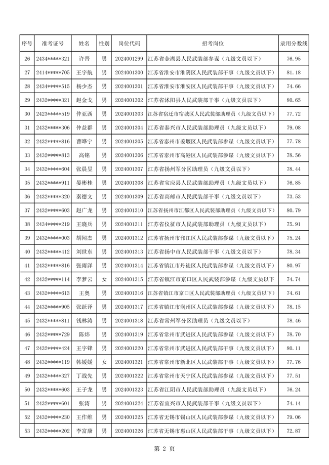 2025年武裝部文職人員擬錄用名單(含上岸分數(shù)線) 2025-10-09