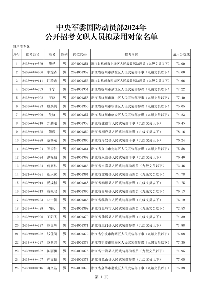 原文標(biāo)題:中央軍委國(guó)防動(dòng)員部2024年公開(kāi)招考文職人員擬錄用對(duì)象名單