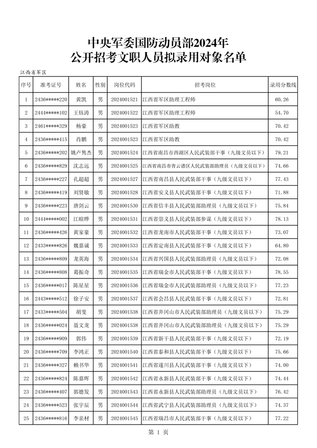 原文標(biāo)題:中央軍委國防動(dòng)員部2024年公開招考文職人員擬錄用對(duì)象名單