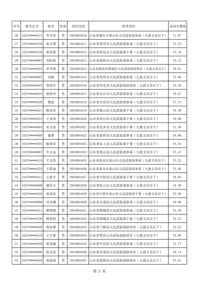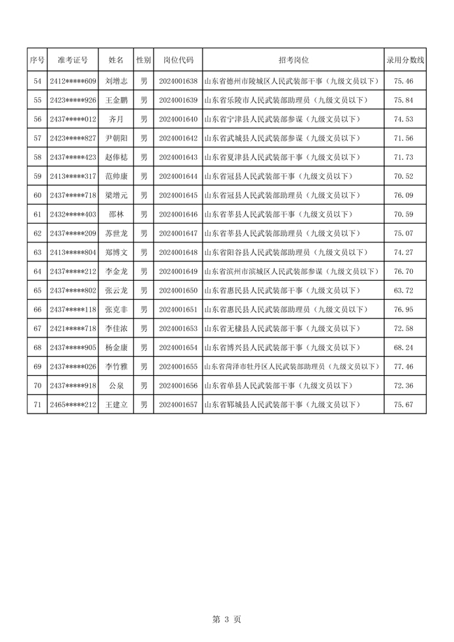 2025年武裝部文職人員擬錄用名單(含上岸分數(shù)線) 2025-10-09