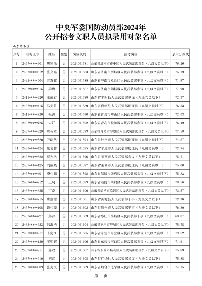 原文標(biāo)題:中央軍委國防動員部2024年公開招考文職人員擬錄用對象名單