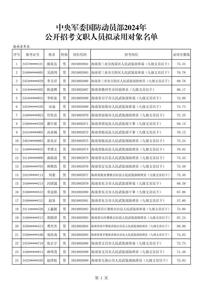 原文標(biāo)題:中央軍委國(guó)防動(dòng)員部2024年公開(kāi)招考文職人員擬錄用對(duì)象名單