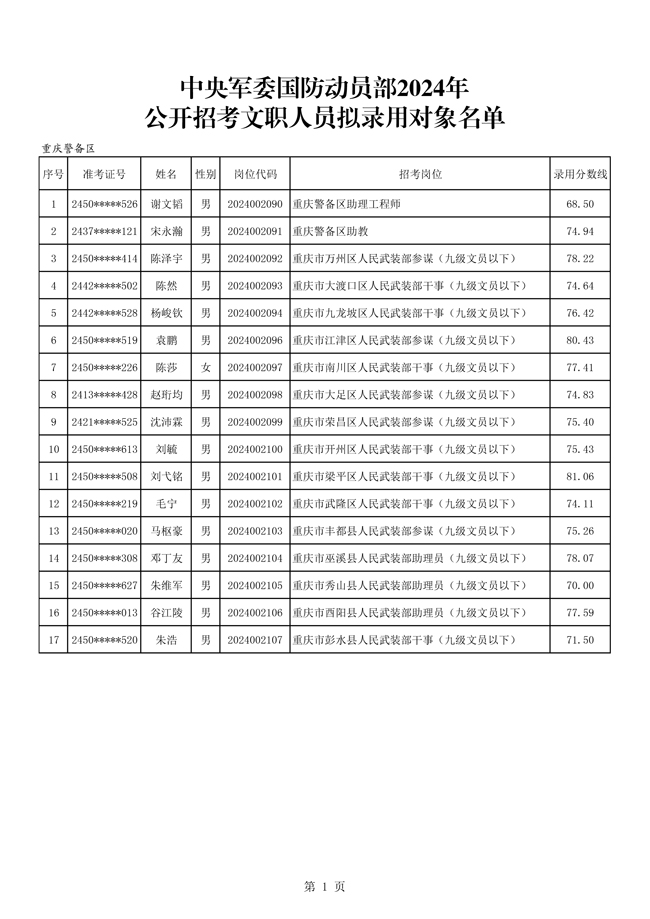 原文標題:中央軍委國防動員部2024年公開招考文職人員擬錄用對象名單