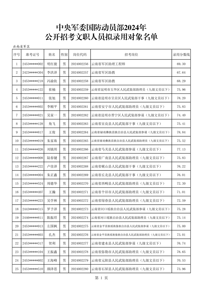 原文標(biāo)題:中央軍委國(guó)防動(dòng)員部2024年公開(kāi)招考文職人員擬錄用對(duì)象名單