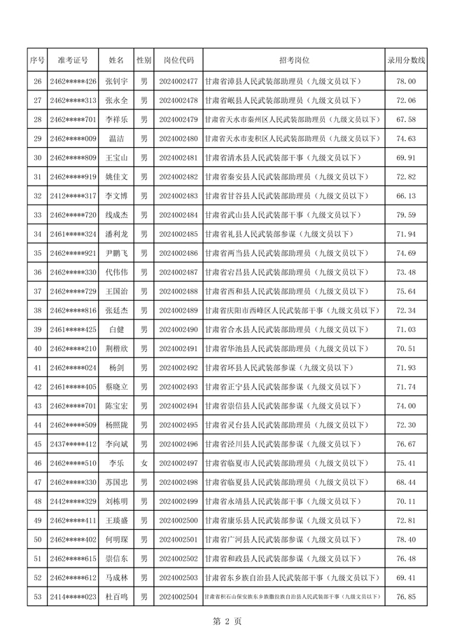 2025年武裝部文職人員擬錄用名單(含上岸分數(shù)線) 2025-10-09